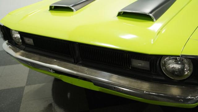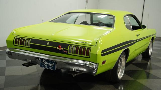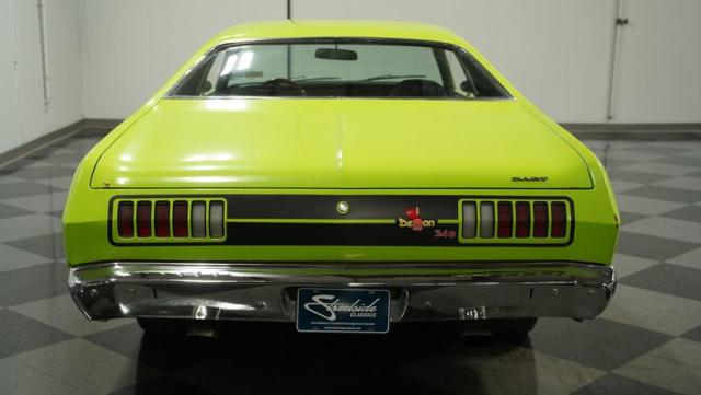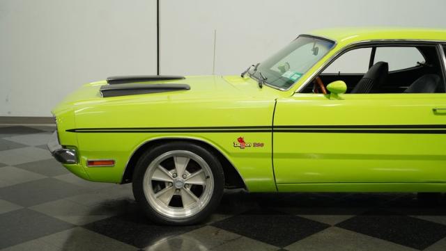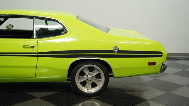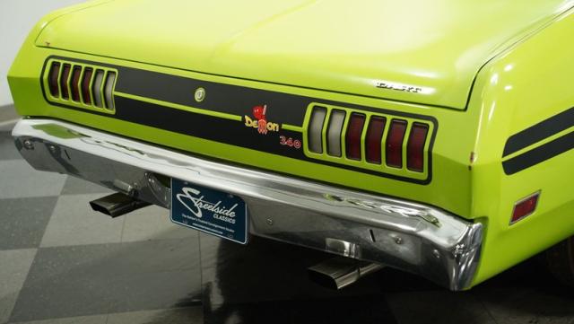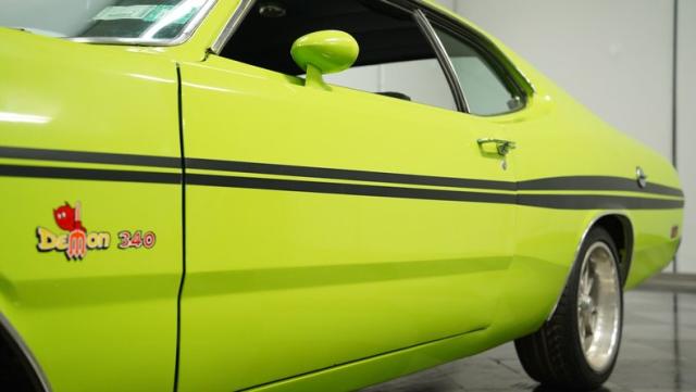 This 1971 Dodge Dart Demon 340 in Citron Yella is a vibrant reminder of the muscle car era\'s golden age. The car\'s bold color and classic Demon side stripes stand the test of time. Rolling on a set of period-correct 17-inch Cragar Eliminator 500 wheels wrapped in 215/45ZR17 tires at the front and 225/45ZR17 at the rear, this Demon has an aggressive stance that hints at the potent powerplant under the hood.