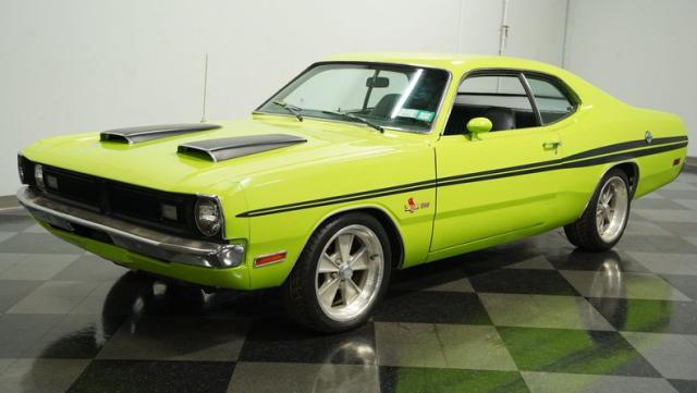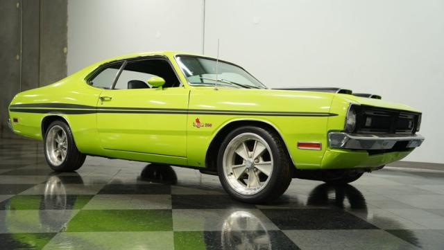 This 1971 Dodge Dart Demon 340, a vibrant example of performance and style. With its powerful engine setup and striking exterior, this car stands ready to deliver thrilling drives. An opportunity not to be missed for enthusiasts and collectors alike. A vivid reminder of what a classic muscle car should be. Call today!