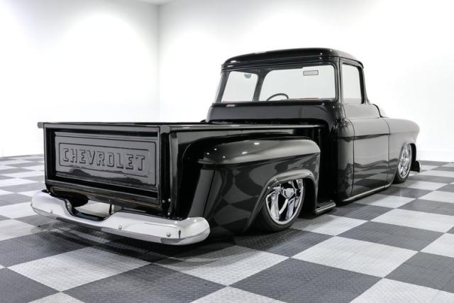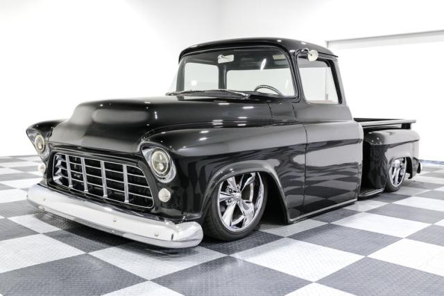 This blacked-out 3100 trades its farm roots for street authority, packing a modern 5.3 LS V8 under the hood backed by a 4L60E automatic overdrive. That combination brings the kind of reliability and punch early truck builders only dreamed about. Dual exhaust lets it breathe, while the aluminum radiator with electric fan and serpentine system keep everything running cool and tight. It is the kind of setup built to be driven, not just admired.