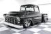 Inside, the custom brown vinyl bench interior blends vintage layout with modern comfort. A tilt steering column, Dakota Digital VHX gauges, Bluetooth stereo, and full Vintage Air climate control make the cab feel more like a contemporary cruiser than a mid-century pickup. Power windows and remote door poppers clean up the look, keeping the lines smooth and uninterrupted.