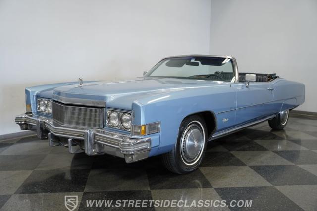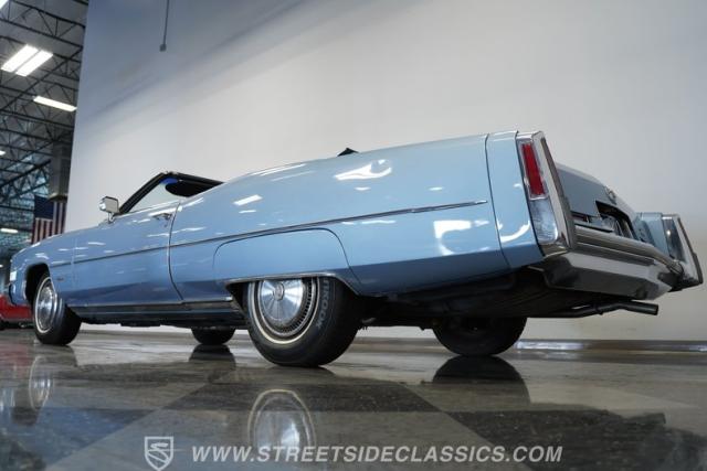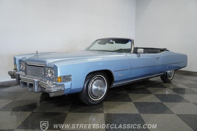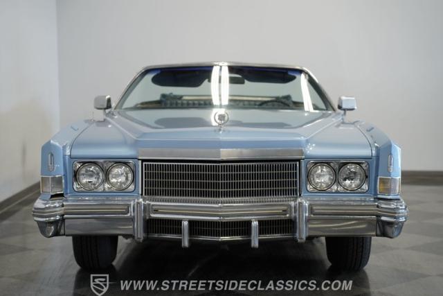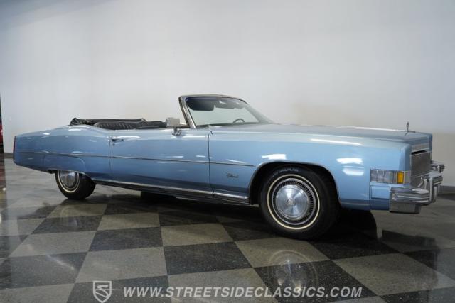 Classic convertibles just don\'t get much cooler than this! Dressed in factory colors both inside and out and powered by a sizable engine that underscores the \"big\" in big block, this 1974 Cadillac Eldorado Convertible is one of those timeless rides you just can\'t help but stare at. Its Antigua Blue Poly paint has a nice, deep shine and the entire exterior is free of any dents or major blemishes that would detract from its outstanding visual impact. With its lengthy wheelbase and timeless style, this droptop started life off on third base, and with its premium, \"triple blue\" configuration and solid running condition, it remains very much at the top of its game.