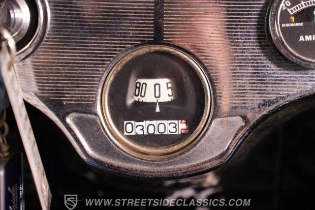 Inside, the cabin exudes vintage appeal with its cloth seats. The simplicity of the era shines through in the spartan yet functional interior. A floor-mounted shifter for the 3-speed manual transmission sits ready for action, while the dash sports clear gauges that have stood the test of time. The cloth mohair-style door and trim panels add texture and period-correct ambiance to the cockpit. The windshield tilts out from the bottom to provide fresh air to the cabin.