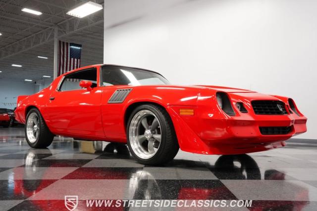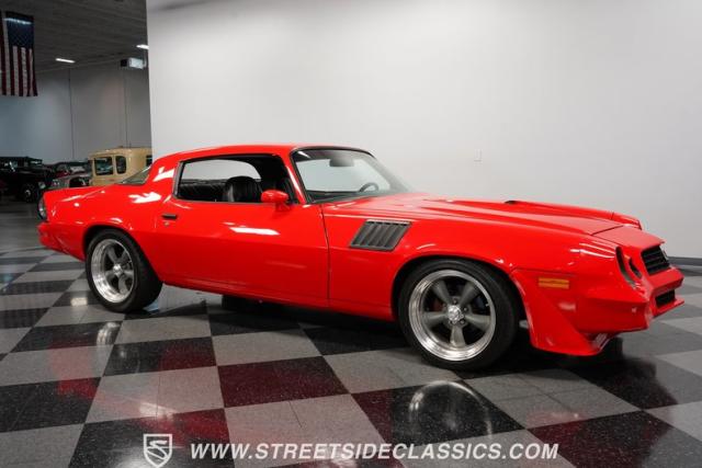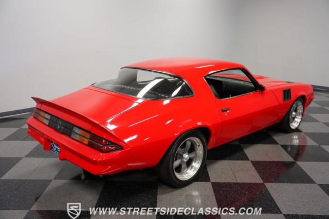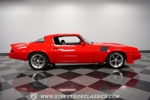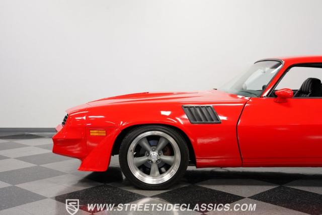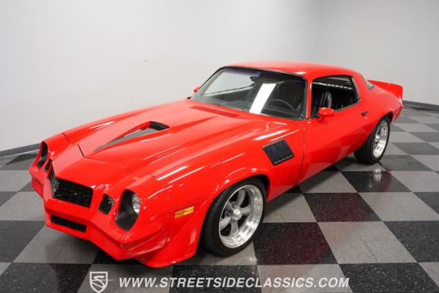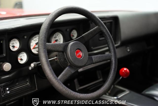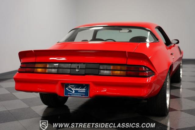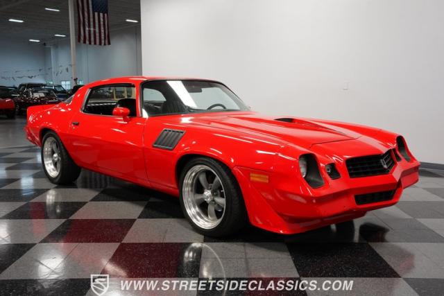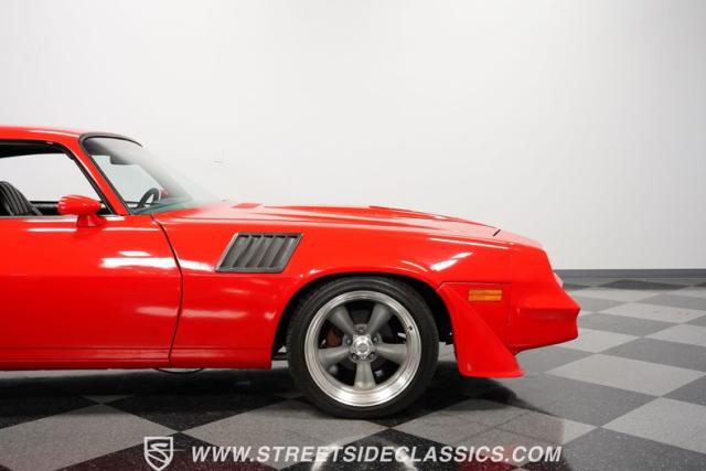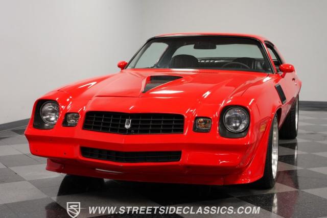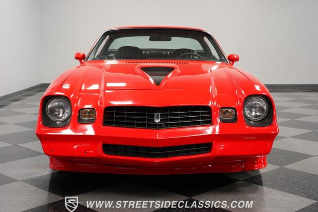 This 1979 Chevrolet Camaro Z/28 blazes onto the scene in vibrant red, embodying the raw power and style that defined late \'70s muscle cars. Its aggressive stance is amplified by 18\" American Racing wheels wrapped in meaty 225/45R18 front and 255/45R18 rear tires. The Z/28\'s iconic silhouette is further enhanced by a sleek spoiler, creating a look that\'s pure performance from every angle.