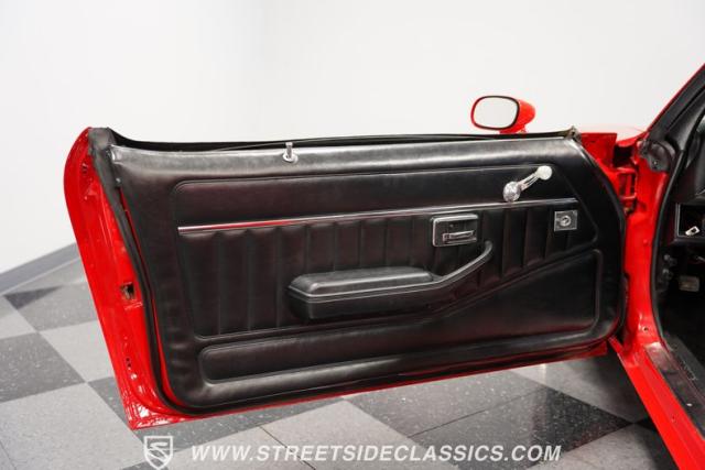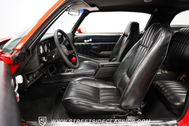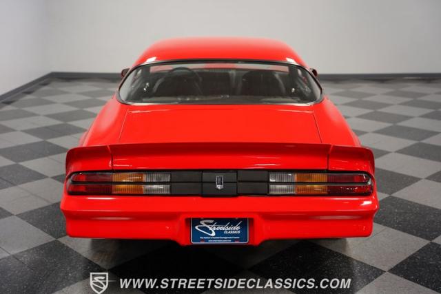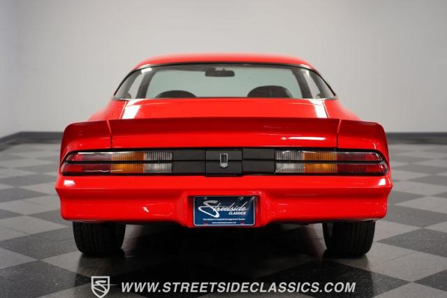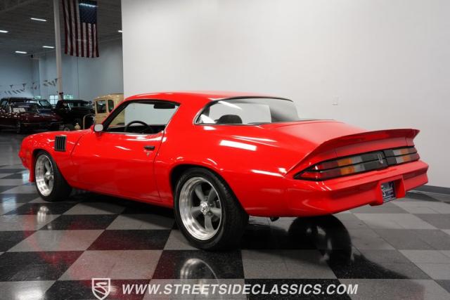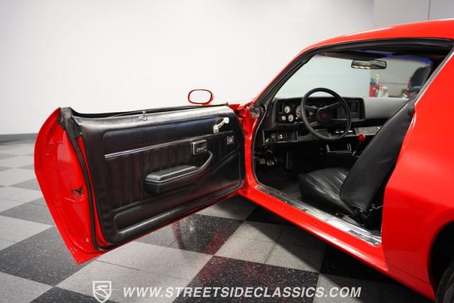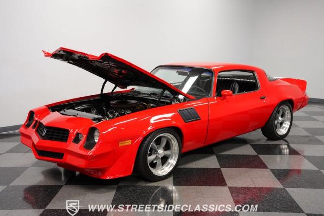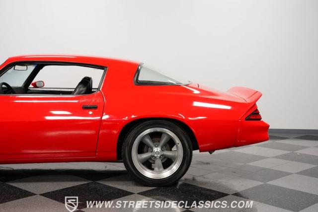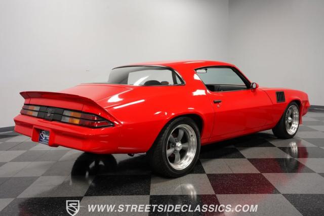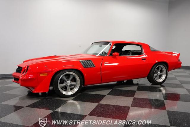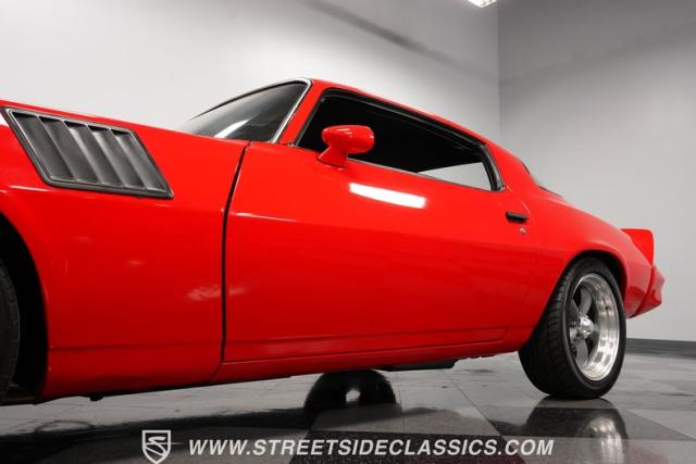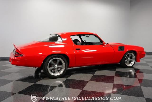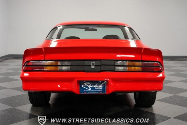 This 1979 Chevrolet Camaro Z/28 blazes onto the scene in vibrant red, embodying the raw power and style that defined late \'70s muscle cars. Its aggressive stance is amplified by 18\" American Racing wheels wrapped in meaty 225/45R18 front and 255/45R18 rear tires. The Z/28\'s iconic silhouette is further enhanced by a sleek spoiler, creating a look that\'s pure performance from every angle.