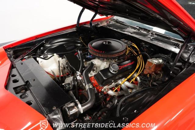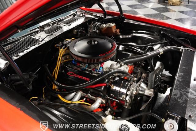 Powering this Camaro is a 350 V8 engine, breathing through a Holley carburetor perched atop an Edelbrock Torker intake manifold. Long tube headers feed into a FlowMaster dual exhaust system, unleashing a throaty growl. The 4-speed manual transmission puts all that power at your fingertips, while front coilovers and a Z/28-spec rear sway bar enhance handling. Power steering and power front disc brakes complete the driving experience.