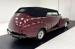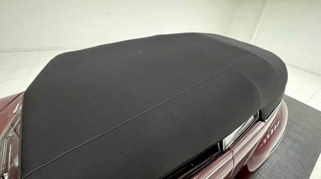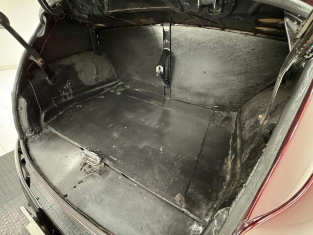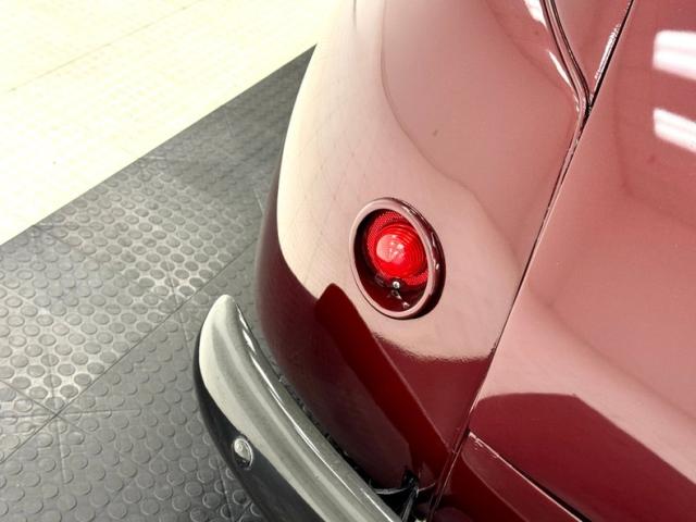 Almost shooting brake in its profile, this long car has an aggressive rake helped by staggered size tires on 14-inch polished American Racing Torque Thrust wheels and those tires enjoy a date code of mid 2021. It\'s impossible to miss the black canvas Carson top which looks like it could retract, but does not, however it does make for a unique presentation over the narrow windows. A trim piece breaks up the Tordo Red paint on the long panels, but the door handles have been shaved and the rocker panel color keyed to create a flowing body. It\'s a whale of a tail out back with a huge decklid flanked by Corvette style tail lights while up front, the frenched headlights bookend a modest, clean grille and black bumper. The paint and metal work is very nice with only some separation and crack in a lower panel corner.