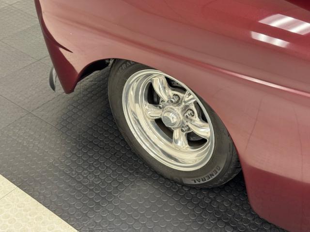 For consignment, a 1948 Ford Deluxe Tudor sedan showing 20,028 miles, but the true miles are unknown. A Nova subframe and Carson top make the list of customizations that make this car an instant stand out.