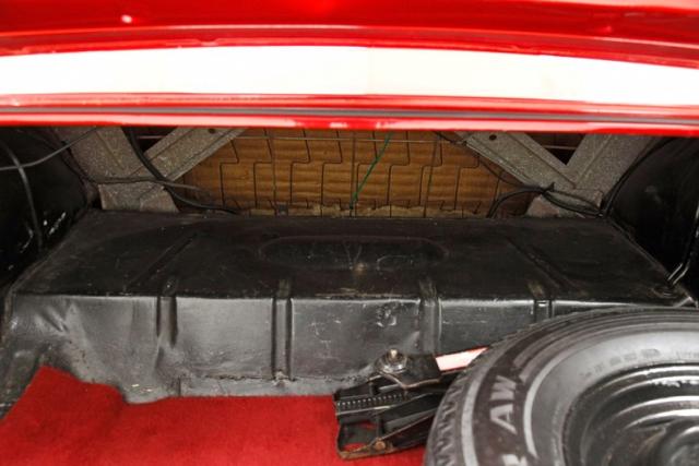 An original fully restored engine in 350ci form is resting nicely within the restored engine bay. Nice orange/red block is now topped with an Edelbrock intake and 4bbl carburetor. Chevrolet badged chrome valve covers and air cleaner assembly have been added on for extra bling. Also, on back a Saginaw 4-speed manual transmission for just a bit more excitement. Putting power to the ground is a CA coded 10-bolt axle with a 3.08 gear ratio. All is very nicely done under this hood.