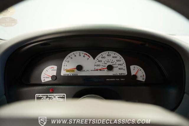 Finished in Jet Black with gray leather bucket seats, this well-cared-for Impala has been carefully driven less than 53,000 miles since it was new. The beautiful original interior features an impressive McIntosh sound system that sounded amazing and was extremely high-end and expensive when new. Other features include a pillar-mounted volt meter and oil pressure gauges, a Callaway Supernatural dash Badge, and a cool sticker on the gauge cluster that reads \"Close all windows above 140 MPH\".