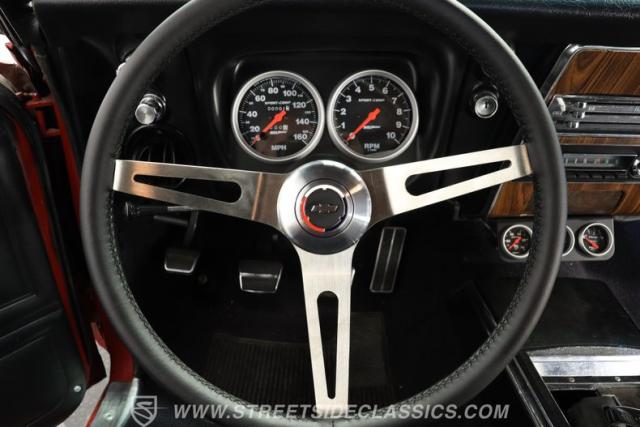 This is one beautiful 1967 Chevrolet Camaro SS 350 Tribute. Every inch of this muscle car is done correctly, from the trim and badges to the hood vents and black front nose stripe. The vinyl top is in great shape, and the stance paired with the chrome wheels looks just right. The chrome bumpers are solid and shiny, and both the front grille and rear end look exactly the way they\'re supposed to. This Chevy is a true showstopper.