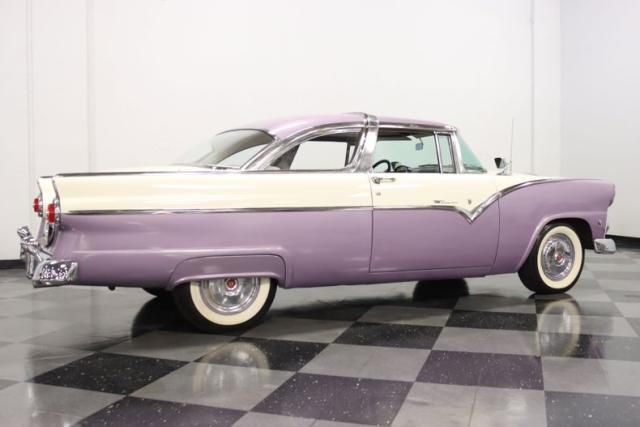 Here\'s your chance to get your hands on something rare, beautiful, and exceptionally interesting. This 1955 Ford Fairlane Crown Victoria made up only about 5 percent of total Fairlane production. And while it was already hard to find another one, we bet you\'ll be one-of-a-kind in this one. You not only have a beautiful vintage exterior, but you\'re going to spend a ton of time showcasing the full custom A/C interior. And with a great driving attitude you\'ll be showing this unique Ford off everywhere.