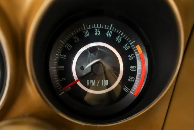 INTERIOR: It is excellent from carpet to headliner! Seats are reupholstered, door panels and armrests were replaced. Headliner looks new. Very clean dash area. It has the optional factory tachometer in the dash and gauge cluster down on the console. It even has the original Muncie shifter. Complete set of seat belts.