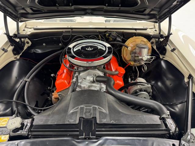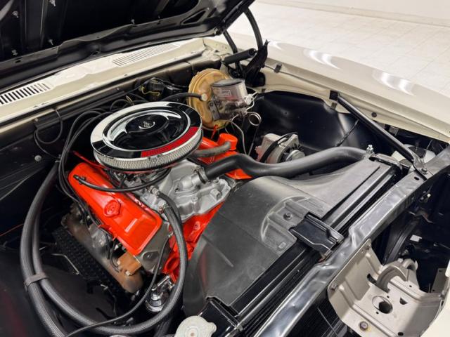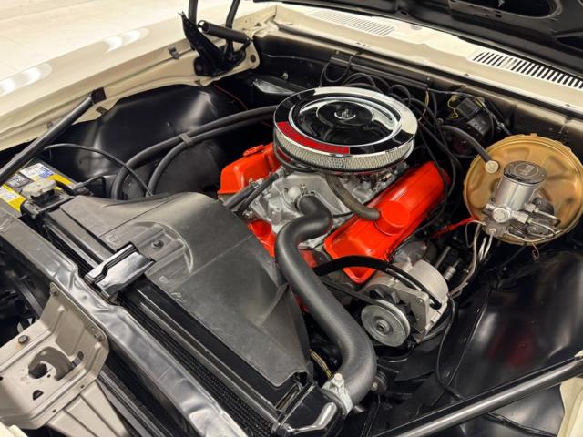 Grab a fork because you could eat off this one! It\'s a 350ci V8 with aluminum heads and an Edelbrock 4-barrel carburetor over the orange painted valve covers and block. Behind it is an Autogear M22 4-speed manual transmission that routes power to the 12 bolt axle with a consignor stated 3.73 gear ratio and Positraction inside. Our decoding has the differential stamping indicating a 3.55 rear from a 1970 Nova. I guess we are picky, after all! Meanwhile, a Wilwood master cylinder with booster is in the spotless bay.