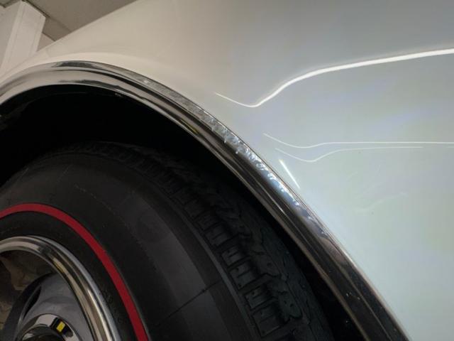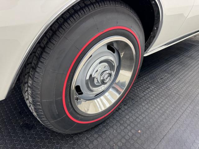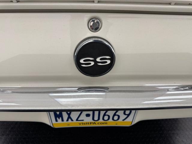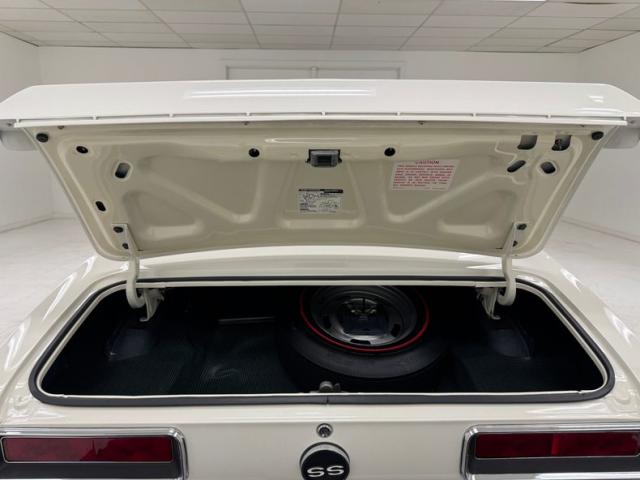 Dressed up in stylish two stage Ermine White and if we left it there, that would be cool. But of course, black nose stripes call out the SS and in fact, surround the emblem on the fender. In front of it, a well designed grille with hidden headlights and covers that mimic the grille, while marker lights are embedded on the apron. In back, our clean presentation includes black framed single lens tail light that fall under the white spoiler while the SS badged fuel filler cap sits dead center. 15-inch Chevrolet Rally wheels carry 205/75R15 redline tires for an even, original looking stance enhanced by rocker trim. The metalwork and paint are fantastic with imperfections noted as a sap like substance on the nose and minor dinging in the wheel arch trim.
