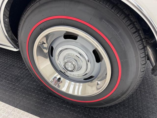 If you didn\'t finish your meal from the engine bay, you can do it underneath where things are fantastically clean. Here we have dual exhaust that runs through FlowMaster mufflers and terminates behind the rear valance. Power brakes are distributed as front disc and rear drum and suspension is configured as coil springs in front and leaf springs in back. Everything is gleaming, grease free, rust free, and clean. But if we\'re being picky, we\'ll note the grease sling on the exhaust from the rear U-joint.