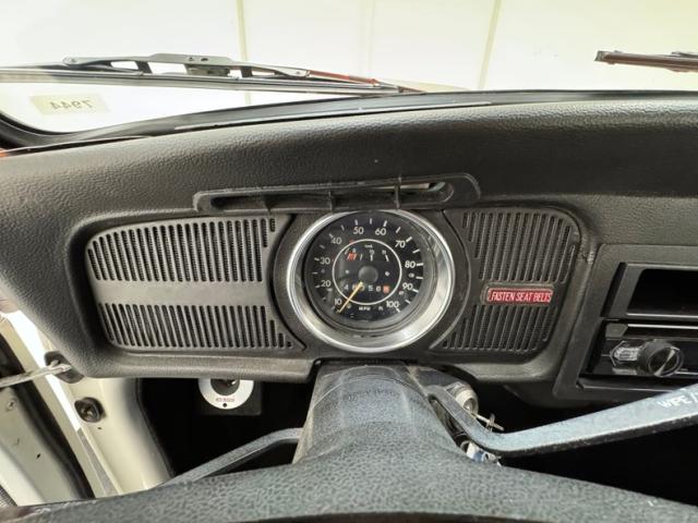 Clean and show worthy with some polished and anodized components is the 1600cc flat four cylinder under the rear hatch, rated at 65 horsepower and wearing a pair of Weber 40mm 2-barrel carburetors. A 4-speed manual transaxle sets the bug in motion and routes power through 3.67 gears in back.