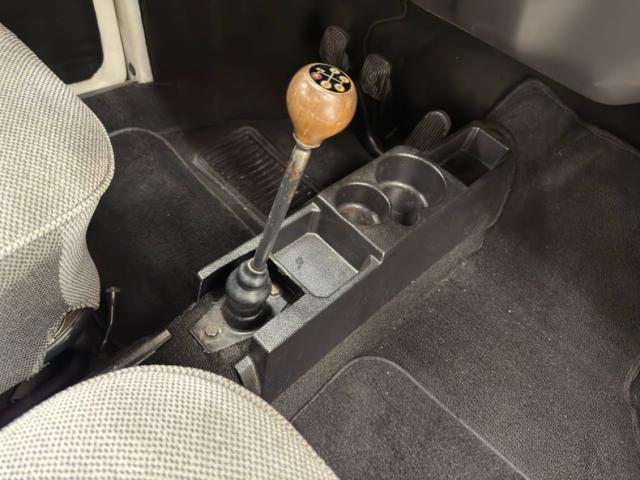Handsome door panels layer gray cloth over black carpet and complementary black hardware. That same gray cloth used to cover the front bench seats and rear bench along with the rear side walls that host speakers, and all are in good condition. Simple VW configuration is found up front with a four spoke steering wheel engraved with the Wolfsburg symbol, leading to the single gauge instrument panel, grated dashboard and updated AM/FM/CD player in the center. A shifter rises from the floor beside a plastic console and clean, black carpet covers the floor where a few more speakers are noted in the footwells. Above us, the black cloth headliner shows some sag and includes a sunroof while visors and B-pillar handles are included on the top side of the car. The front trunk is cleanly appointed with black carpet and panels and includes a jack.
