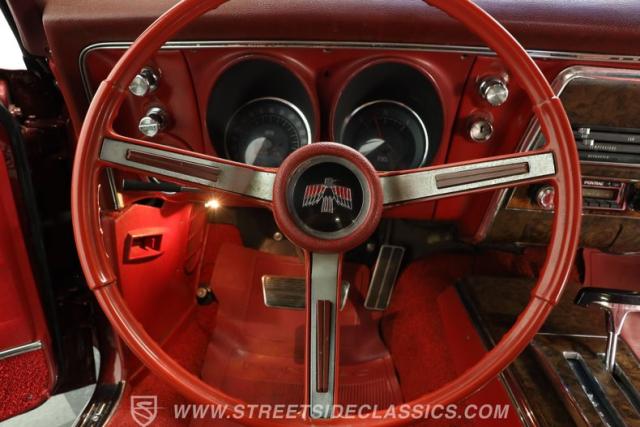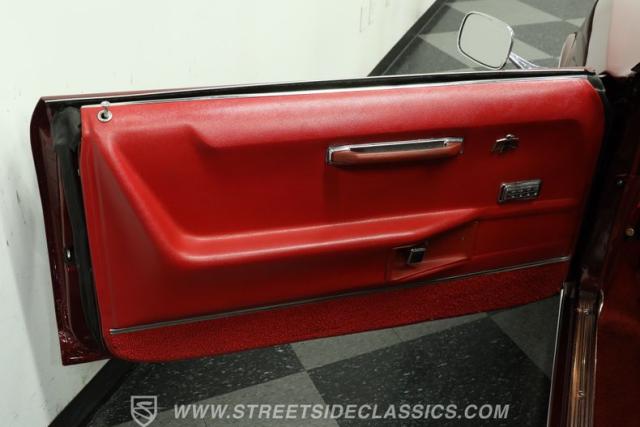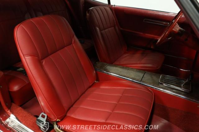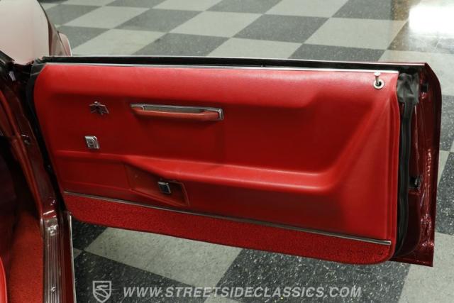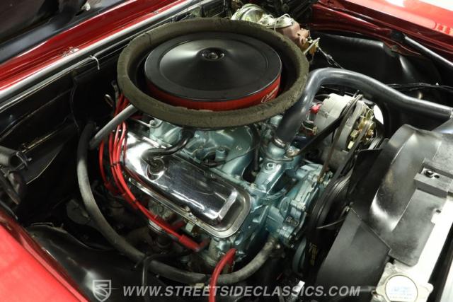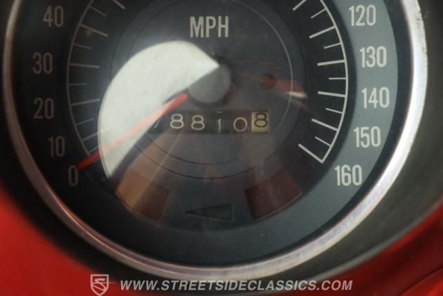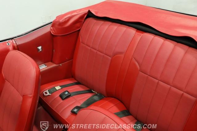 The interior retains a largely factory configuration, revitalized with red vinyl upholstery that has an authentically vintage appearance. The overall freshness inside the doors is a welcome sight in a UV-vulnerable convertible like this, and both the front buckets, and the rear bench seat and door panels, look great. The center console, as well as the most heavily trafficked touch points, present nicely, and even the faux trim on the console has its original pigmentation. Inside the instrument cluster, the gauges sit behind clear lenses and, just to the right, a retro-styled AM/FM stereo sits in place of the original. This is a sharp-looking vintage driving environment by any measure.
