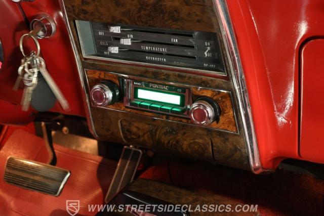 Beneath the hood, the engine bay is well-maintained, with fresh hoses and belts and properly routed wiring in plain sight. At its center, the original 350-cubic-inch V8 holds court, equipped with a Quadrajet four-barrel carburetor on its factory-style intake manifold. The engine pairs with a period-correct 3-speed automatic TH400 transmission that offered an upgrade to the Firebird\'s standard drivetrain configuration when it was released. An upgraded aluminum radiator sits up front to help regulate operating temperatures and a closer look will reveal that both the alternator and brake booster have been recently replaced. The latter activates a power brake system that features discs up front, bringing this classic to quick stops with minimal effort.