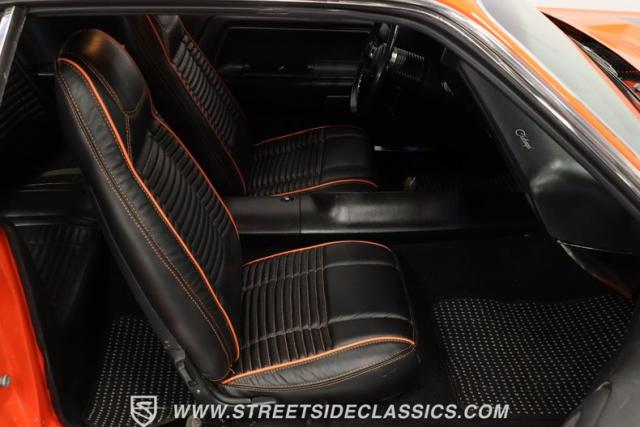It\'s one of the most iconic muscle cars ever to light up the asphalt, draped in period-correct Vitamin C Orange paint and powered by an expansive V8 that has been the envy of fellow enthusiasts for decades. This 1970 Dodge Challenger 440 is an outstanding representative of its model, and it arrives at the present in great shape. Its nostalgia-inducing paint has a nice shine and, if you take a closer look, you\'ll see that the broad stripe ornamenting its hood is no mere decal. It\'s painted on, a feature reserved only for 1970 Challengers rolling off the assembly line outfitted with the coveted Bumblebee appearance package. Add in clean chrome bumpers at both ends, along with a collection of body trim that really shows nicely, and you have one fine-looking Mopar classic.
