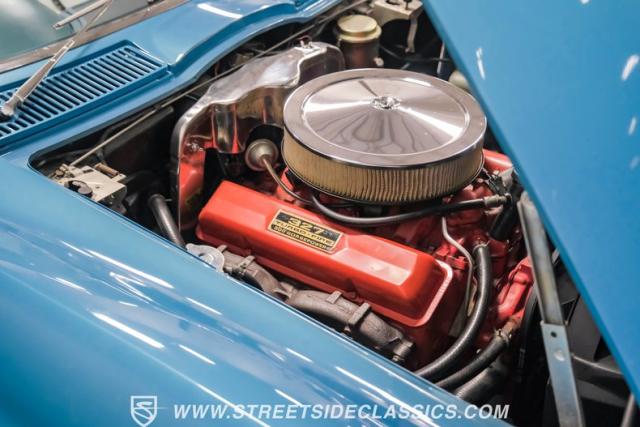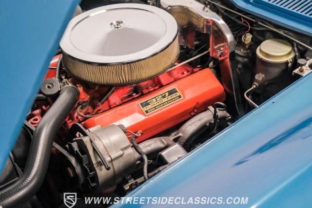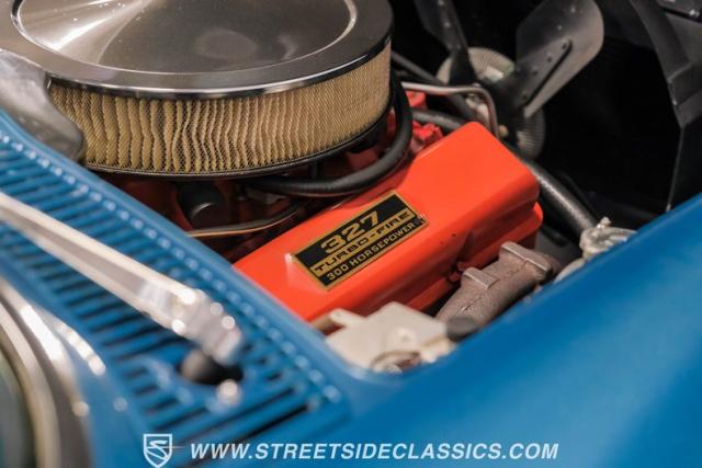 The engine bay houses the numbers-matching 327 cubic inch V8. Topped by a 4-barrel carburetor, this 300 horsepower powerplant runs very smoothly and pairs to a 4-speed manual transmission. The front suspension utilizes coil springs, shocks, and a sway bar, while the rear features the Corvette\'s signature mono-leaf spring setup. Four-wheel disc brakes round out the mechanical package.