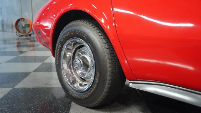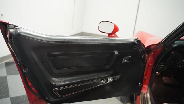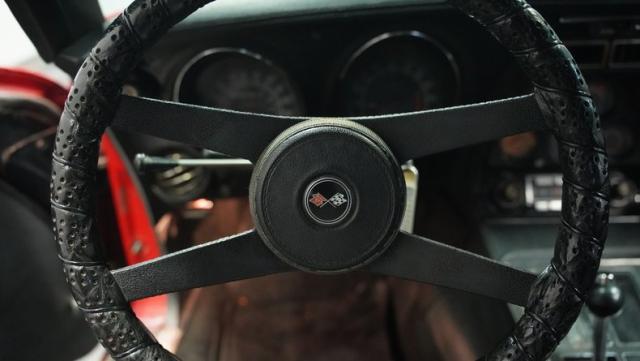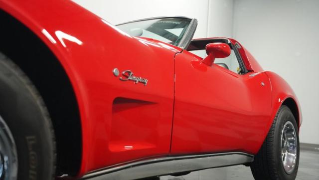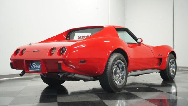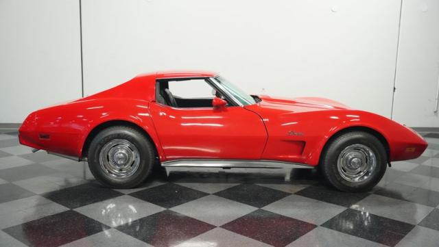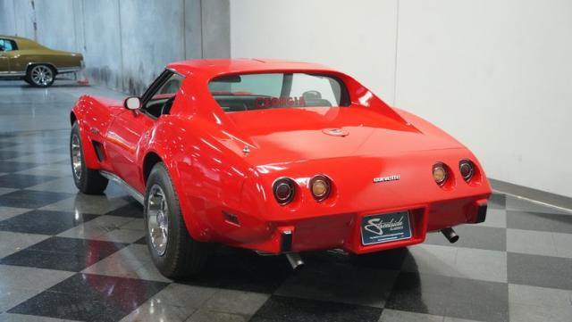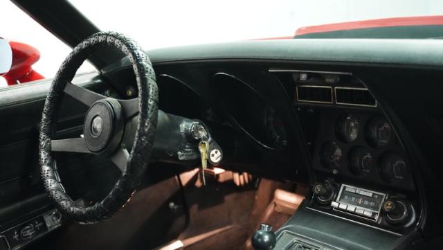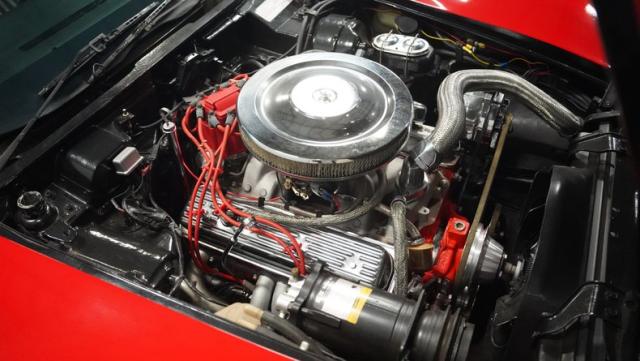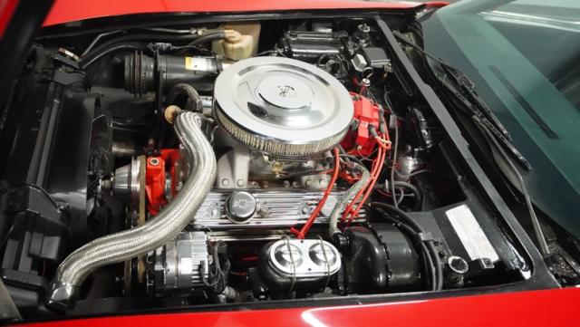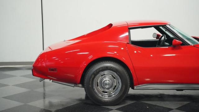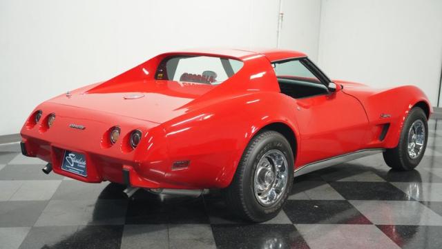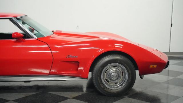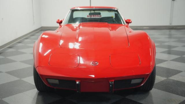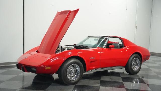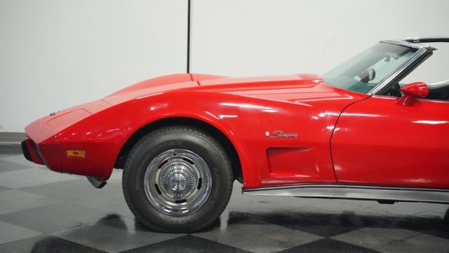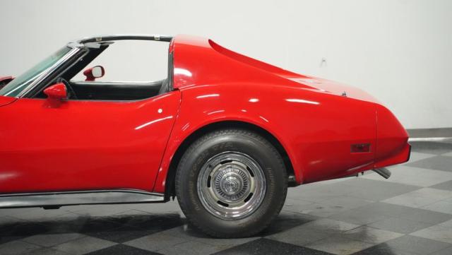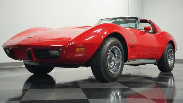This 1976 Chevrolet Corvette brings the street racing spirit of the \'70s into the modern era. Owned by the same performance enthusiast since 1980, this red rocket matches classic muscle with modern moves. The aggressive profile sits low and wide, amplified by the dual black T-tops that give it that perfect street fighter look. The stock 15x8 wheels wrapped in meaty BFGoodrich P255/60R15 rubber aren\'t just for show - they\'re ready to put serious power to the pavement. The sleek bodywork and muscular curves create pure intimidation on the street.