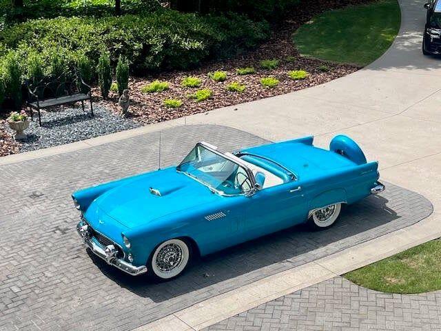 1956 Ford Thunderbird is a stunning example of America\'s answer to the European two-seater roadsters that captured the imagination of returning WWII GIs. Born from Fords vision to offer something more refined than the Corvette, this \'56 Thunderbird represents the most desirable year for many enthusiastsfeaturing the iconic rear-mounted Continental kit, porthole hardtop, and a long list of factory options. Finished in rare and sought-after Thunderbird Peacock Blue (Turquoise) with a contrasting black and white interior, this T-Bird has undergone a comprehensive restoration including paint, interior, chrome, soft top, and full mechanical systems. Mechanical & Performance: Numbers-Matching \'Thunderbird\' 312 V8 312 CID, 225 HP 9:1 Compression Ratio Four-Barrel Carburetor Dual Exhaust (Exits through rear bumper ports) Ford Automatic Transmission Floor-mounted locking button selector Low and Drive ranges Master Guide Power Steering 12-Volt Electrical System With Battery Cut-Off Switch for storage Enhanced night visibility and reliability Ice-Cold Air Conditioning Full-Flow Oil Filter Telescopic Lifeguard Steering Wheel Fully Adjustable Exterior & Interior Features: White Porthole Hardtop and Black Haartz Canvas Soft Top Chrome Wire Wheels (5) wrapped in Whitewall Radials Continental Kit with Rear Fender Skirts & Shields Windshield Washers & Wing Windows Side Chrome Mirror & Side Opening Fresh Air Vents Comfort & Details: Factory Instrumentation including Domed Speedometer & Tachometer Town & Country Signal-Seeking Radio Magic Aire Heating and Defrost System Electric Clock & Unused Cigar Lighter TBird Scripted Floor Mats Trunk Jack Owners Manual & Sales Literature Included Highly Detailed Engine Bay Dimensions: Wheelbase: 102 inches Overall Length: 185 inches Please Note The Following **Vehicle Location is at our clients home and Not In Cadillac, Michigan. **We do have a showroom with about 25 cars that is by appointment only