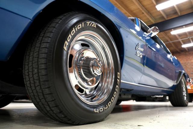 Finished in its original Lemans Blue, this professionally done 2-stage paint lays deep and clean, perfectly contrasted by Tuxedo Black stripes. The stance is pure muscle with a cowl induction hood, front air dam, rear spoiler, and all the signature SS touches-fog lights, rear louvers, SS badging, and bright drip moldings. It doesn\'t just look right-it looks dialed.