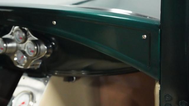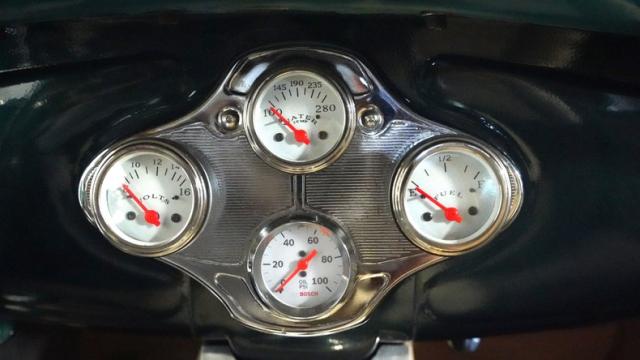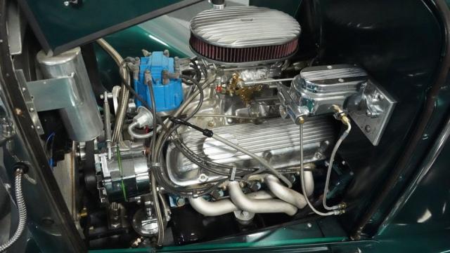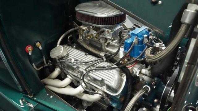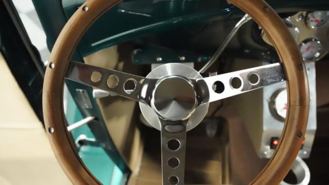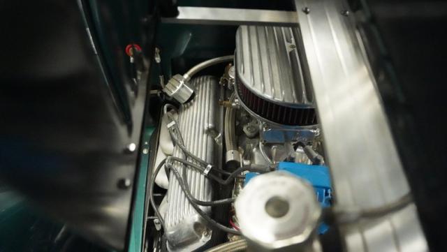 A Blueprint 302 V8 crate engine delivers reliable power through a C4 3-speed automatic transmission. The Ford 9-inch rear end puts that power to the pavement. The suspension system combines adjustable coilovers with tubular control arms up front and a 4-link rear setup for superior handling. Disc brakes at all corners provide stopping power, while the Flowmaster dual exhaust system produces an authoritative tone. A custom aluminum radiator with electric fan maintains optimal operating temperatures.