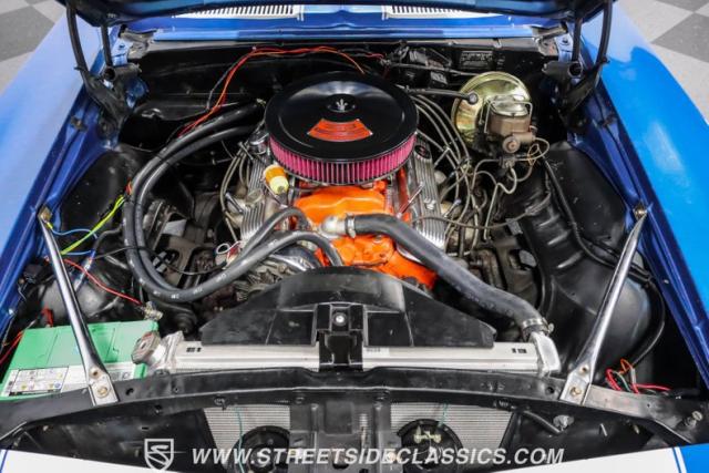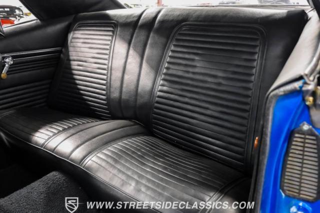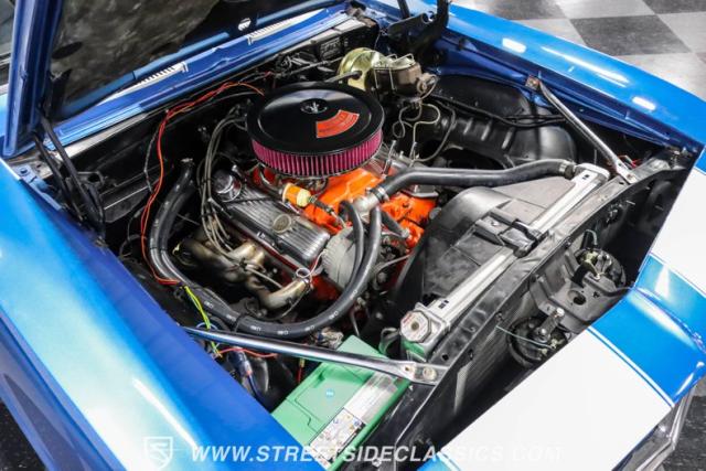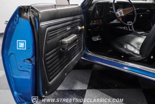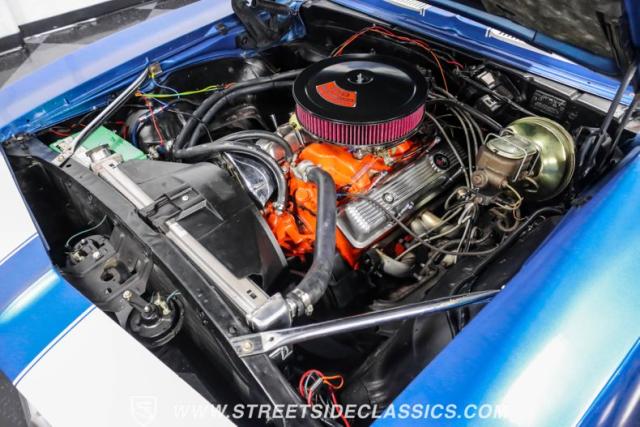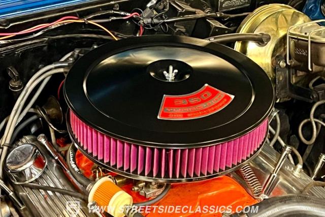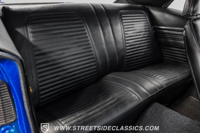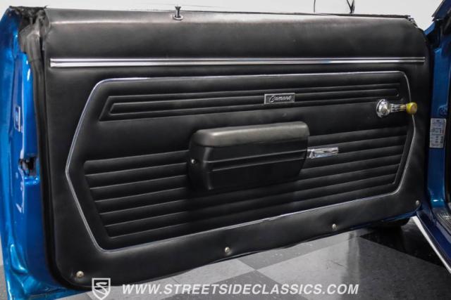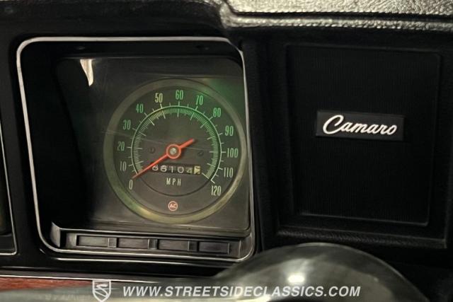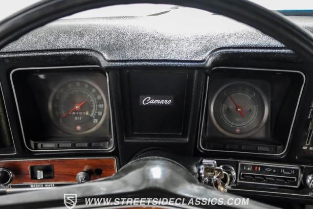 Under the cowl hood of this 1969 Camaro is a healthy 327 cubic inch V8 mated to a TH350 3-speed automatic transmission. Engine upgrades include an Edelbrock carburetor, open-element air cleaner, finned aluminum valve covers and an aluminum radiator. A set of long-tube headers exit through a throaty dual exhaust system fitted with Flowmaster mufflers. Other desirable equipment includes front disc brakes with SSBC power booster, and power steering.