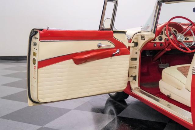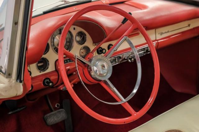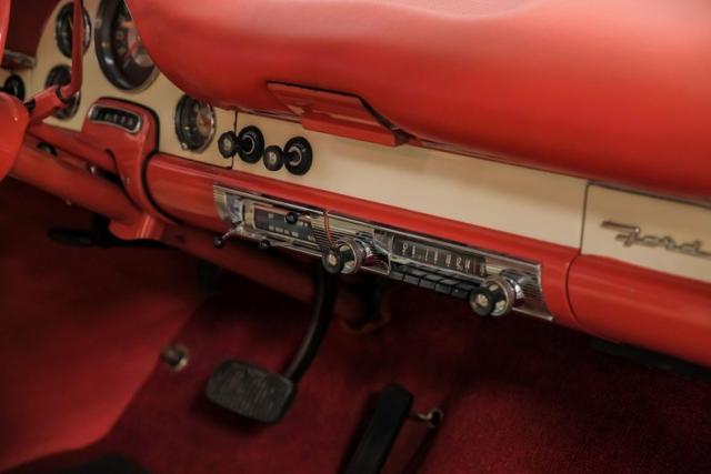 Powering this classic is a 200-horspower, 312 cubic-inch, Thunderbird V8 engine with 4-barrel carburetor and Ford-O-Matic transmission. The engine is said to have been rebuilt and runs beautifully. A fresh service and sorting with a vintage car specialist included removal and flushing of the fuel tank, carburetor rebuild, brake work, new rear pinion seal, ignition points, four new tires and more to ensure this Ford runs and drives great. A receipt for all the work performed come with the car.