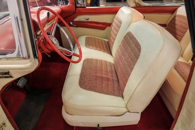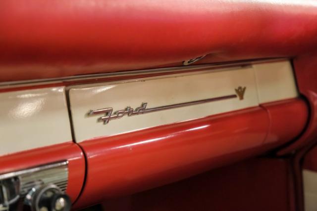 One of the most sought-after Fords from the 1950\'s is the 1956 Fairlane Crown Victoria. Going by the trim tag, this particular Crown Vic decodes as a solid top car, yet it has the transparent top that was found on the very rare, Skyliner. It is unknown how exactly this beauty came by its top, but it was a modification offered by dealers back in the day. The craftsmanship it took to make the transformation here was done very well and professionally and the cowl tag is the only indication we\'ve found that it didn\'t actually come this way from the factory.