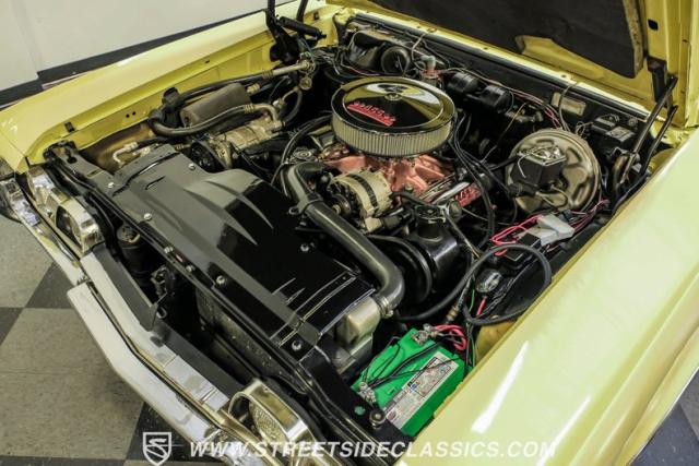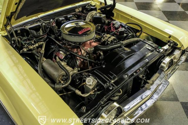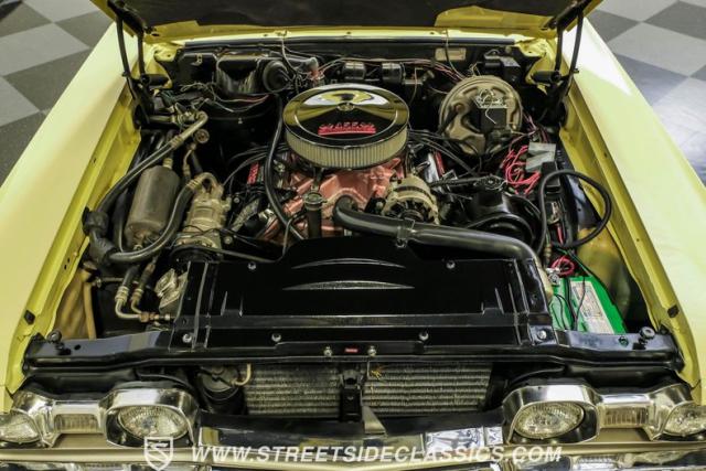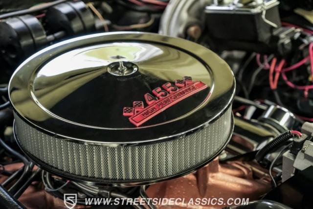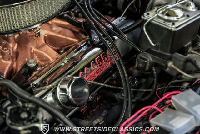 The 455 V8 powerplant delivers raw American muscle through a TH400 3-speed automatic transmission. The engine breathes through an Edelbrock intake manifold and freshly rebuilt Holley carburetor. An aluminum radiator with electric fans maintains optimal operating temperatures. The front disc brakes and power steering system create responsive handling, while Hooker dual exhausts produce that signature muscle car soundtrack.