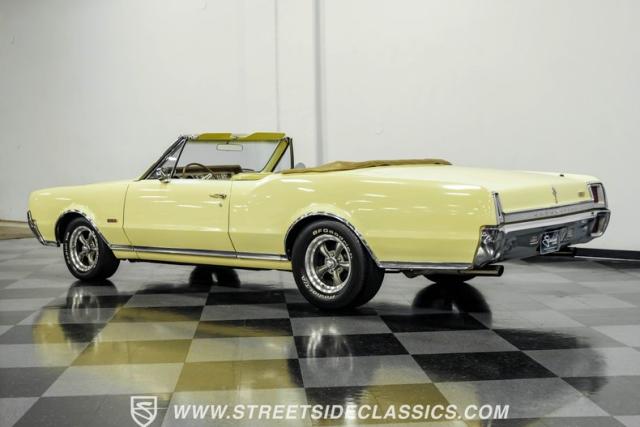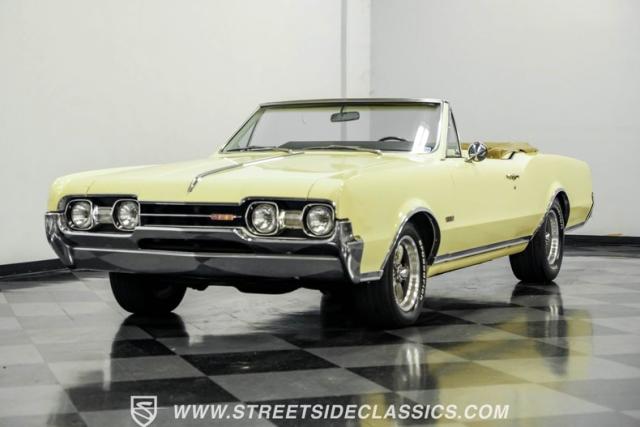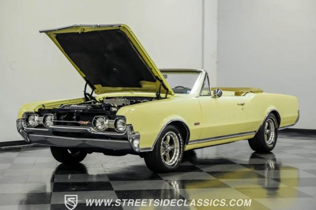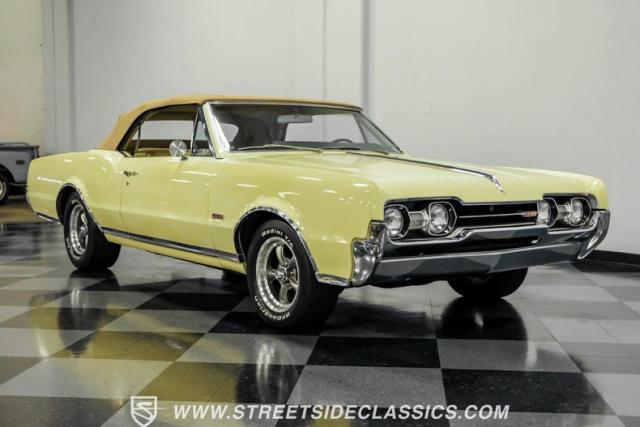 This 1967 Oldsmobile Cutlass 442 Tribute Convertible combines classic muscle car style with a potent 455 V8, making it perfect for weekend cruising. The factory yellow-on-yellow color combination creates pure automotive excitement. Call today!