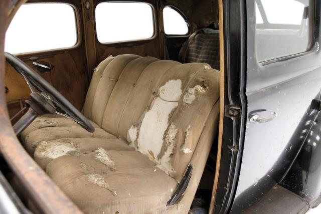 For consignment, one of no less than 11 body styles offered up in this 1937 year. This example the Fordor sedan described as a \"roomy car\" with pillar lights, comfortable foot rest and arm rests in rear compartment, mohair upholstery , and this one with the larger221ci Flathead 85hp V8, It is in barn find condition and will need plenty of TLC.