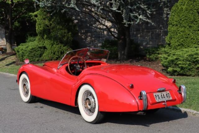 1952 Jaguar XK120 Roadster with Matching Numbers This 1952 Jaguar XK120 Roadster is a matching numbers example wearing an older restoration. Red with black interior. Just out of an estate, it was last running about 8 years ago and the motor turns freely. Prior to being parked the suspension was all rebuilt. The car has been converted to a 12-volt system with an alternator. It also comes with fender skirts and an extra set of wire wheels. The older restoration is showing its age in a few areas like the paint and chrome. This car has a lot of potential. It wouldn\'t take much to turn it into a great driver. This desirable XK120 Roadster is not to be overlooked by any passionate Jaguar enthusiast or collector alike. Matching numbersSubject of an older restorationDesirable and collectible XK120 RoadsterIncludes fender skirts and extra set of wheelsThe ideal candidate for easy restoration Price:$46,500