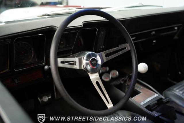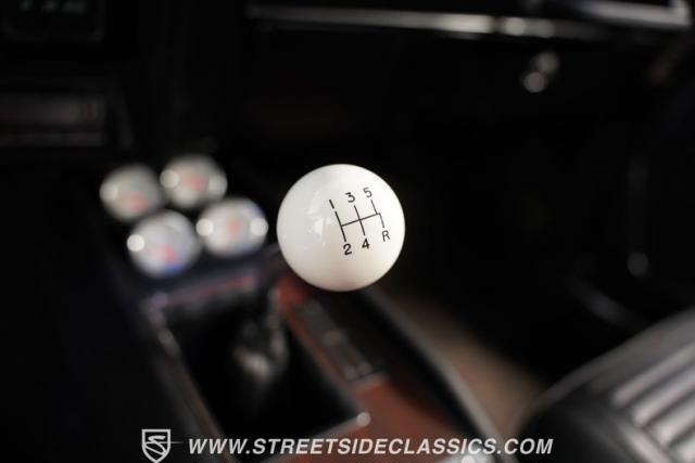 The interior of this Z/28 is appointed in all-black, creating a focused, performance-oriented environment. Vinyl bucket seats provide firm support during spirited driving. A Hurst shifter emerges from the center console, ready for quick gear changes. The console also houses white-faced AutoMeter auxiliary gauges, offering crucial performance data at a glance. An Alpine stereo system with Bluetooth and USB connectivity brings modern audio capabilities to this classic muscle car.