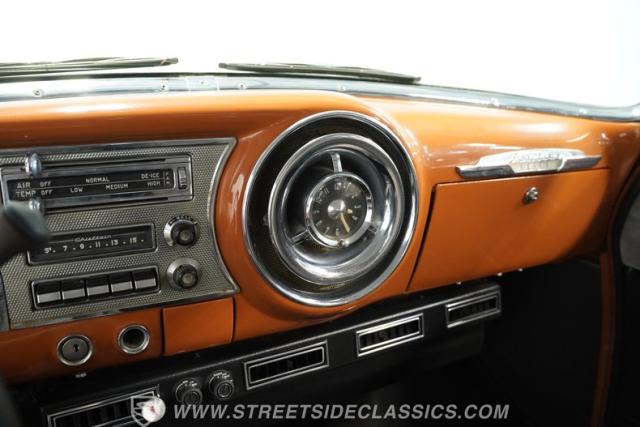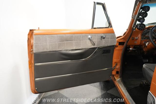 Step inside this Star Chief and experience a unique blend of classic and custom elements. The front bucket seats have been updated from a later model, offering enhanced comfort while the rear seat has been upholstered to match. Custom door panels complement the stock-style dash, which houses an aftermarket air conditioning unit underneath. A small race-style steering wheel sits on a tilt column, surrounded by quad A-pillar gauges, and the ignition has been thoughtfully relocated to the steering column. The carpet is newer but not fully installed, and the door panels remain in good condition, making for an inviting and driver-focused interior.