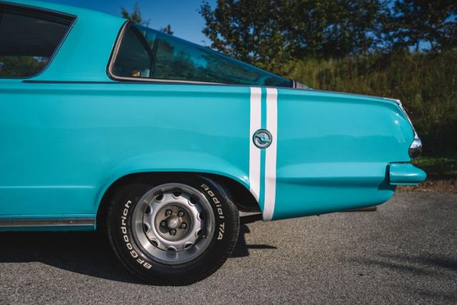 The exterior is a feast for the eyes, with a gorgeous Turquoise paint job that highlights the car\'s sleek lines. Painted bumpers and headlight bezels add to the clean, customized look, while dual mirrors and Rallye wheels with BF Goodrich radial tires complete the classic aesthetic. Underneath, the car is just as clean, with a spotless undercarriage that speaks to the care and attention to detail this Barracuda has received.