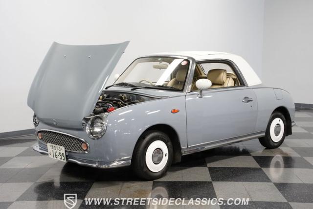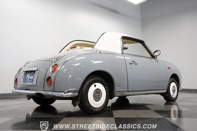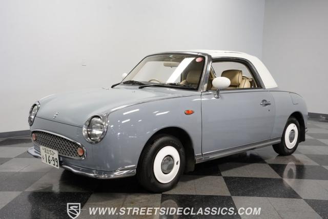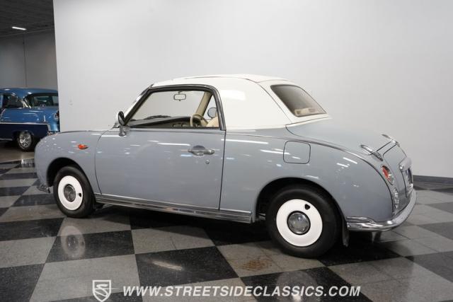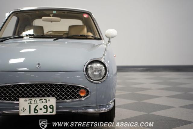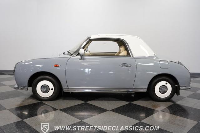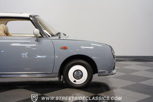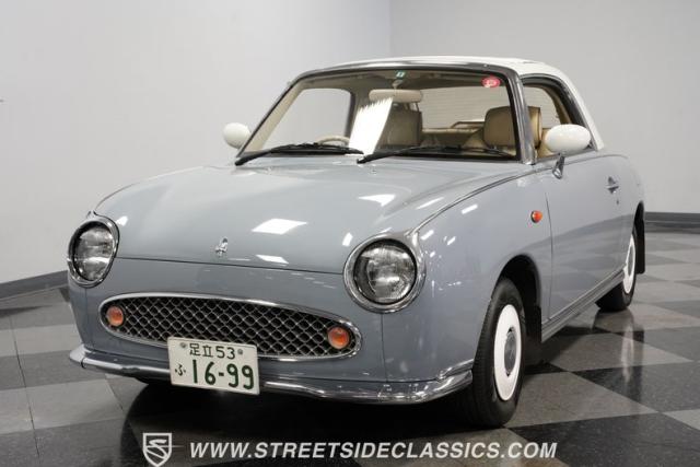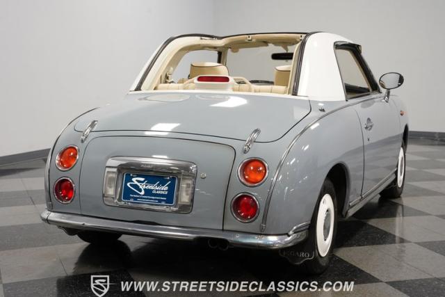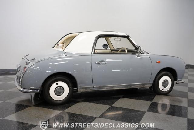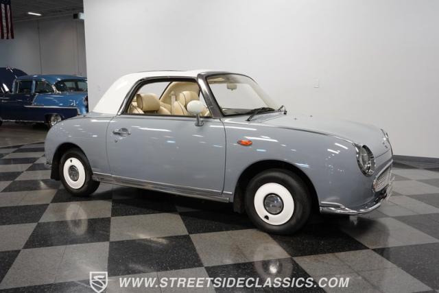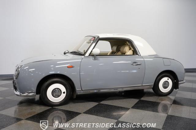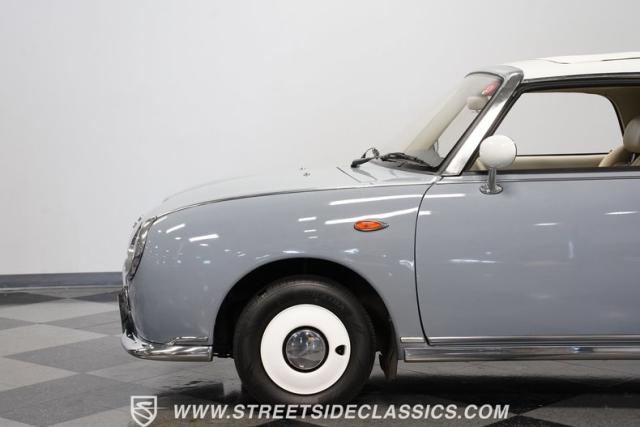 Built for only four months in 1991, this Nissan Figaro represents exclusive JDM engineering and style. The distinctive Lapis Grey paint creates a perfect contrast with cream-colored accents. The retractable vinyl top, upgraded in 2019, adds open-air excitement to every drive. The compact proportions and classic Japanese design roll on factory 12-inch wheels wrapped in fresh 165/70R12 tires. Chrome trim details and mud flaps amplify the Figaro\'s unique presence on American roads.