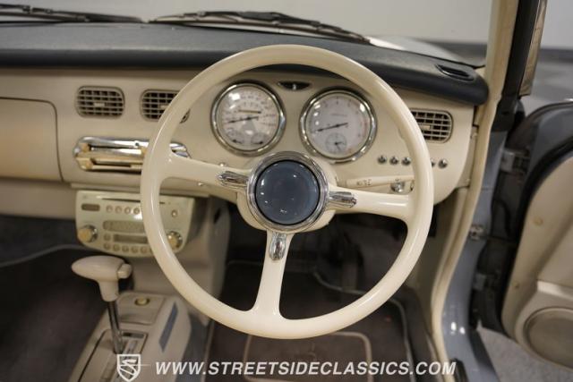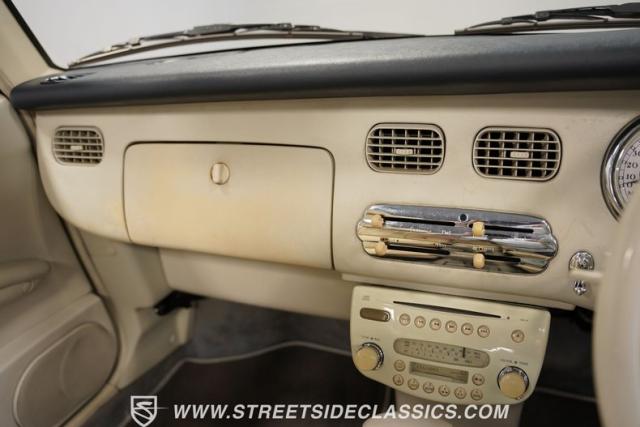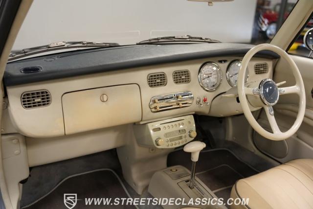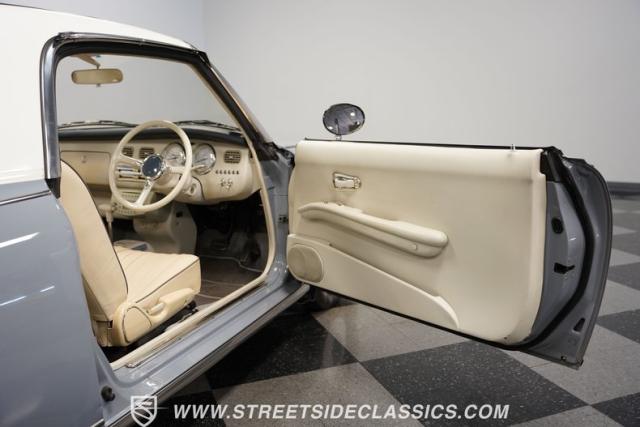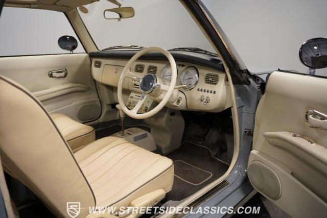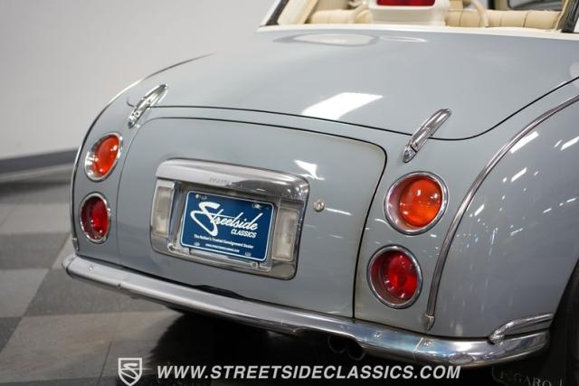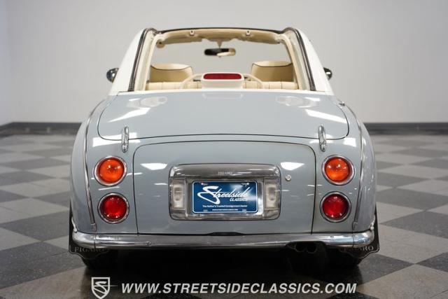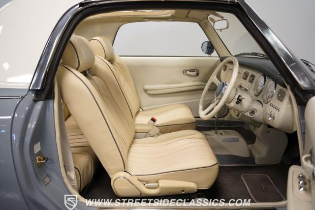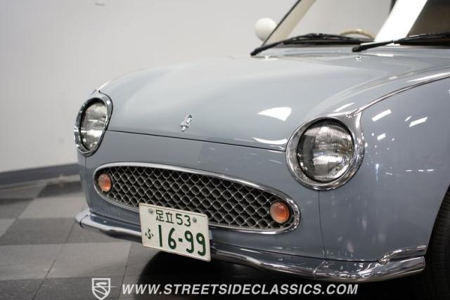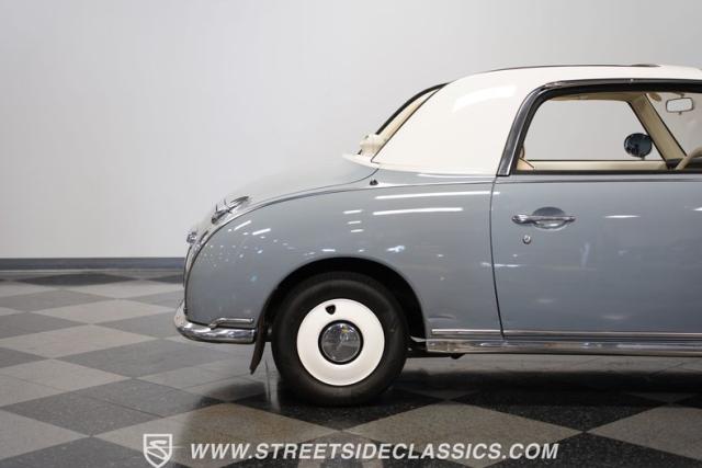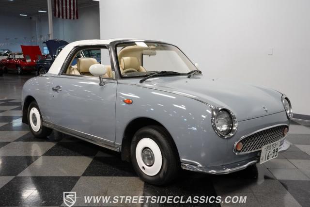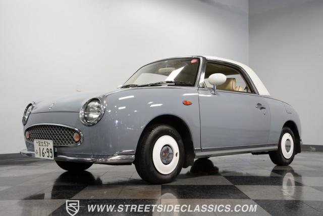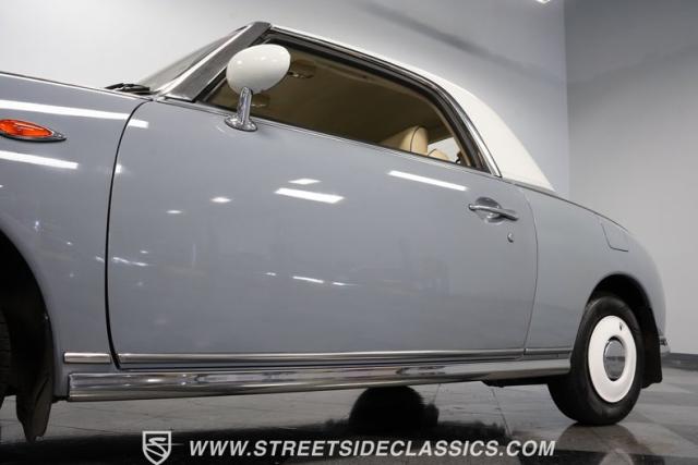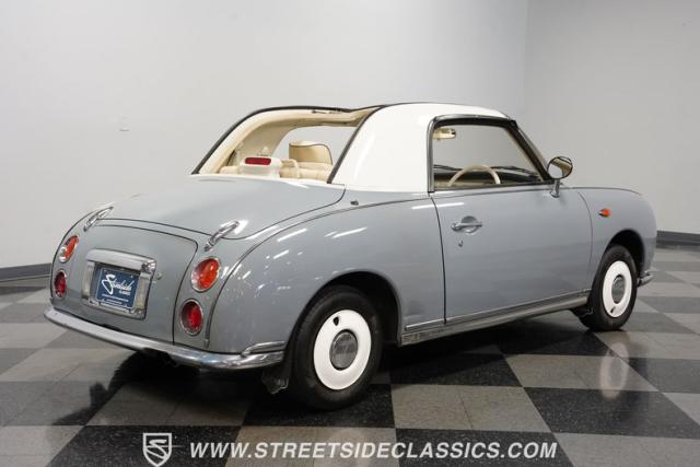 Built for only four months in 1991, this Nissan Figaro represents exclusive JDM engineering and style. The distinctive Lapis Grey paint creates a perfect contrast with cream-colored accents. The retractable vinyl top, upgraded in 2019, adds open-air excitement to every drive. The compact proportions and classic Japanese design roll on factory 12-inch wheels wrapped in fresh 165/70R12 tires. Chrome trim details and mud flaps amplify the Figaro\'s unique presence on American roads.
