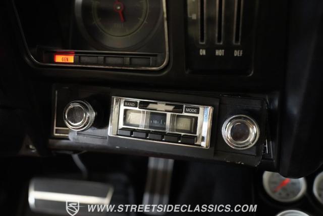 The interior is black with vinyl high-back front bucket seats and a rear bench seat. They are in great condition, as are the door panels, carpet, and headliner. The dashboard retains its original look, featuring easy-to-read aftermarket gauges along with an additional set of gauges in the center console: Oil Temp, Trans Temp, Water Temp, and Voltage. The dash pad is in very good shape, as is the center console, which houses the sought-after staple shifter. For audio entertainment, there is a stock-appearing AM/FM/Cassette radio with a CD player mounted under the glove box. Heavy-duty floor mats protect the carpet, while the door sills, door jambs, and weather stripping all look good.