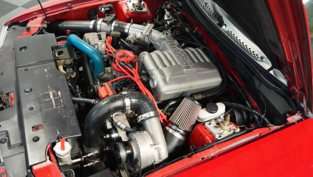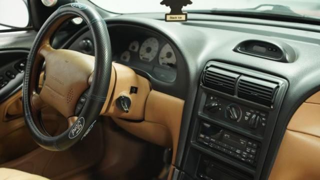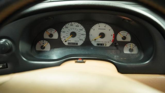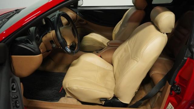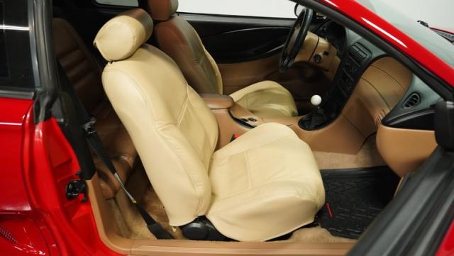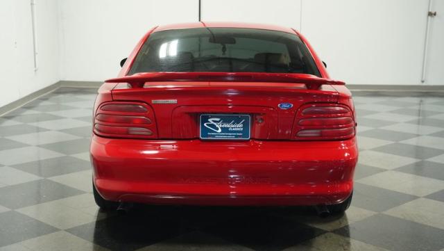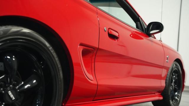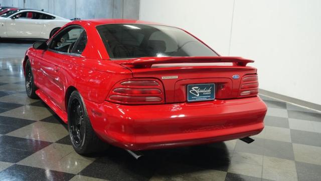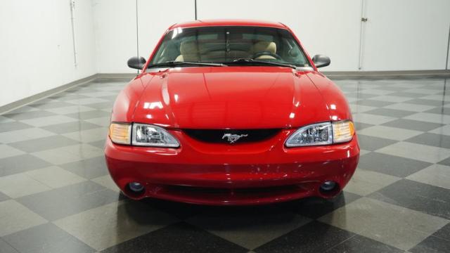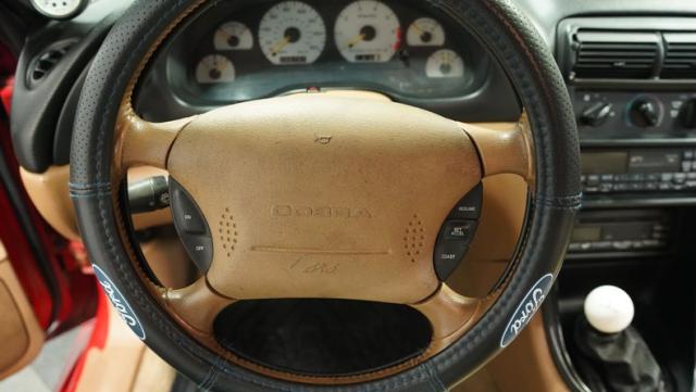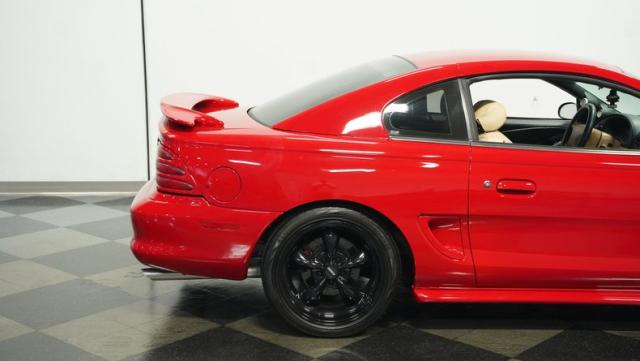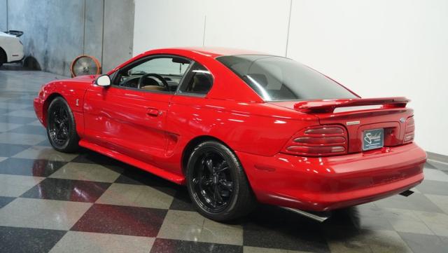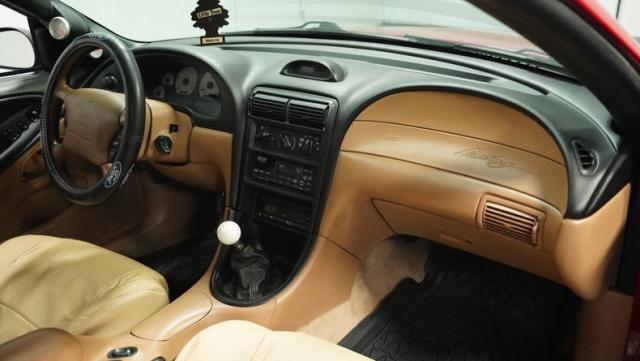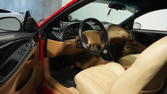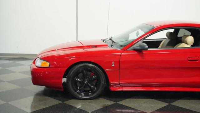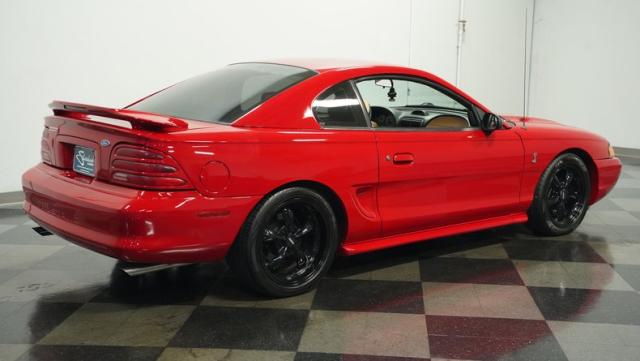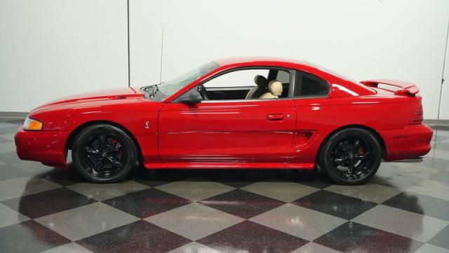 This 1994 Ford Mustang SVT Cobra Procharged boasts a rare pedigree - it\'s one of only 1,000 Cobras produced that year. Cloaked in Rio Red, this SN95 Mustang exemplifies the evolution of Ford\'s pony car. The staggered wheel setup, with 17-inch fronts and 18-inch rears, gives it an authoritative stance. Massive 245/45R17 front and 285/35ZR18 rear tires provide serious grip. A fiberglass hood with a functional scoop announces the forced induction powerplant, while Cobra-specific bodywork sets it apart from garden-variety Mustangs.