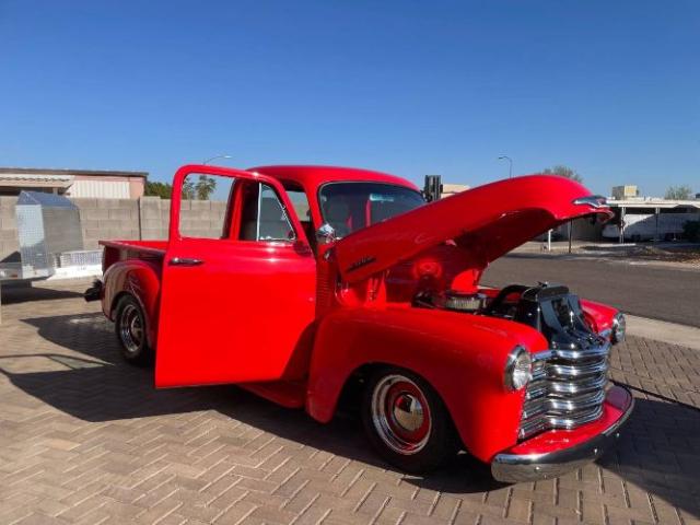 1954 Chevy Pickup Immaculate, fully documented build. All work and craftsmanship are top notch and show quality. Truck is as nice underneath as it is on top. Please understand what you are buying is not a back yard build. GM Crate 350/330hp with 700 R4 Transmission. Full Fatman 4 link Chassis. Mustang 2 Front suspension. QA-1 Coilovers Ford 9inch with 28 spline axles and 3.70 gears Power steering/Power Brakes/Power windows Ice cold Vintage AC Retro Sound Sanderson Block Hugger Headers Walker Radiator Flowmaster Super HP-2 Mufflers Ididit Steering column with Retro Wood Wheel All New Glass and rubber molding throughout Flawless RED paint and body Custom wood floor bed with gas tank relocate Hitch with wiring BFG Tires Runs, drives and looks great. no issues of any kind. Clean title in hand and all build documents as well. condition: like new cylinders: 8 cylinders drive: rwd fuel: gas odometer: 700 paint color: red title status: clean transmission: automatic type: pickup Please Note The Following **Vehicle Location is at our clients home and Not In Cadillac, Michigan. **We do have a showroom with about 25 cars that is by appointment only **Please Call First and talk to one of our reps at 231-468-2809 EXT 1 ** FREE Consignment Visit Our Site Today Easy To List Your Vehicle and Get it Sold in Record Time.