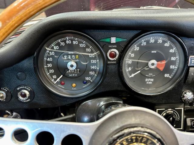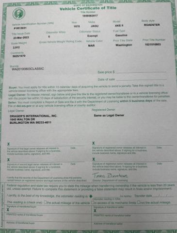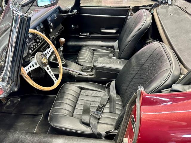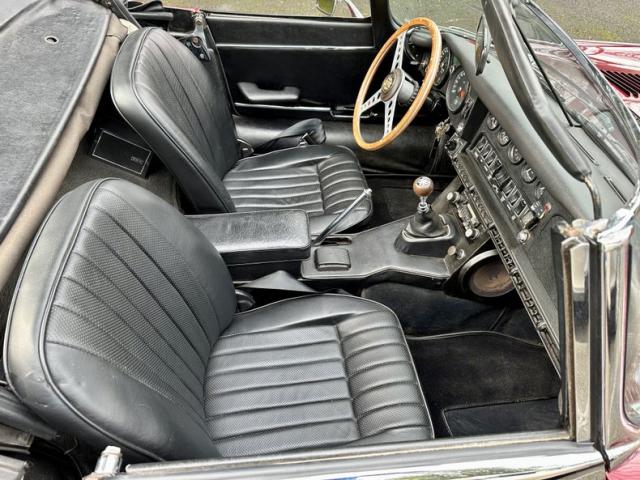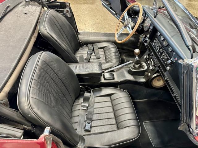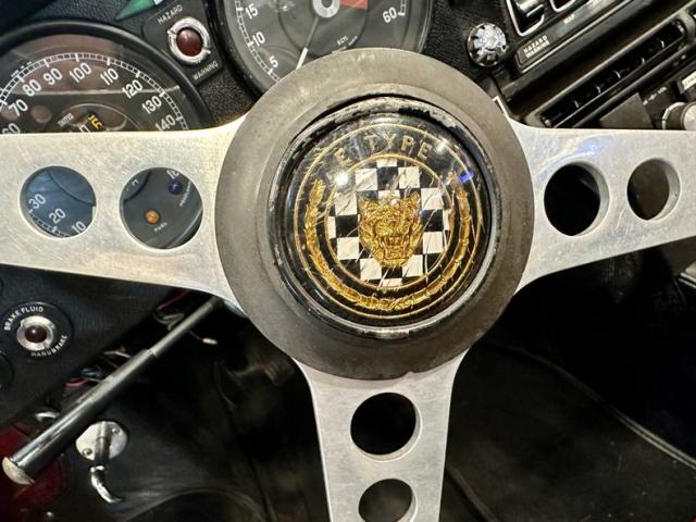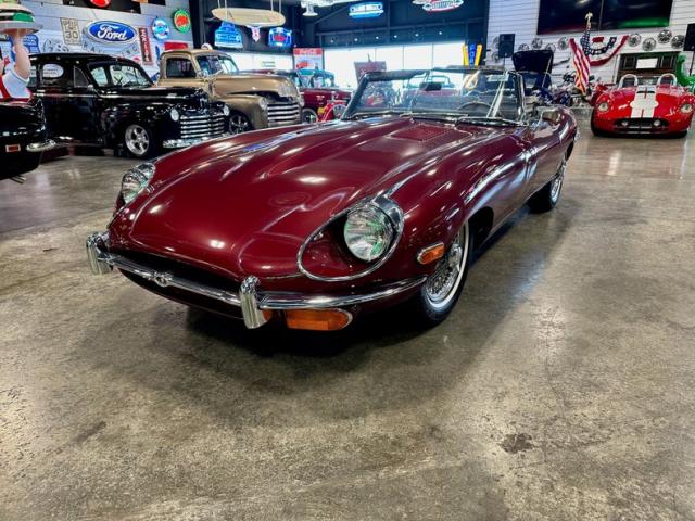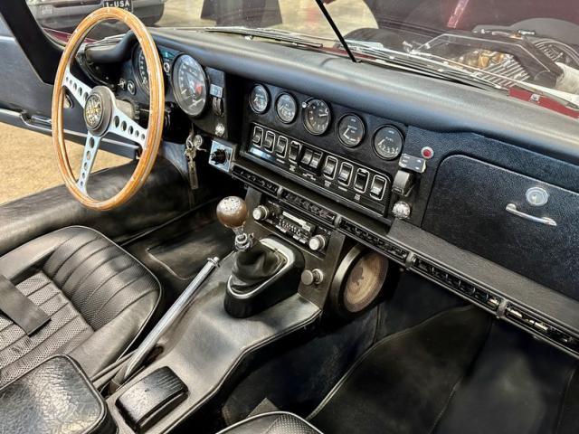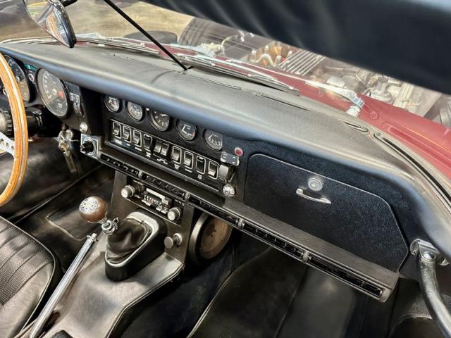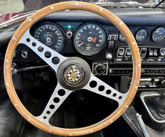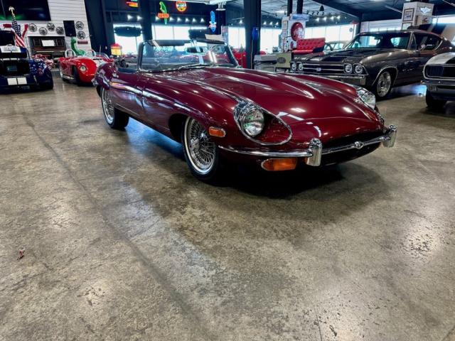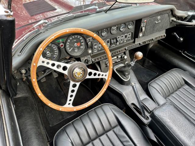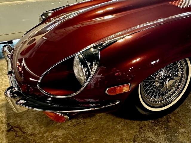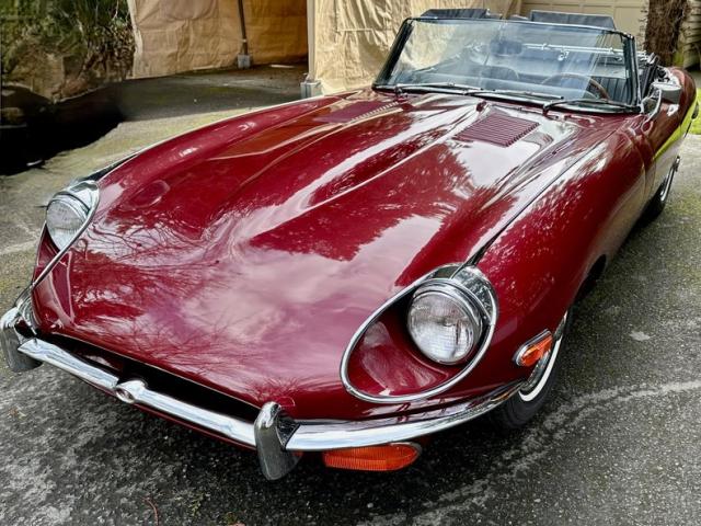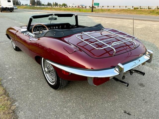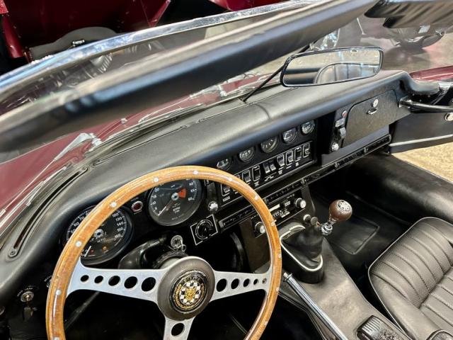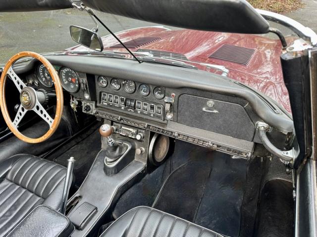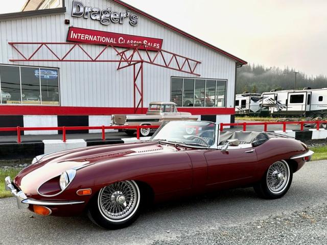 1970 Jaguar XKE Roadster. DGC3031. VIN# P1R13031. This is a gorgeous car! There are 7 layers of burgundy paint on the body and it looks amazing. The engine runs and sounds awesome. I have only driven this car a short distance, but I was really impressed with how it performed. The chrome, trim, interior, exterior, engine compartment, trunk, and underside are all beautiful on this car. There isn\'t much that I can point out because it is in great condition. The convertible top we just replaced and it looks awesome. We also had Rich\'s Custom Upholstery go through the interior. They repadded the seats and freshened it up. When Rich pulled the carpets up, he found that the floor pans needed to be replaced so he did that. This is a show car now. The knock off wire wheels help set off the look of this car. This is a factory air conditioned car. Here in the Northwest it\'s hard to get anybody to repair air conditioning on old cars. ( I have looked at many 1970 Jaguars for sale, and only found one with power steering and no factory air. ) Another great feature is that it has power steering. How often will you see an XKE Jag, with air conditioning and power steering? The previous owner had this car in his possession for about 13 years. He is the one that did the partial restoration with the paint and chrome. He also did some extensive front end work, replaced the brakes, recored the radiator and also replaced the tires about 2,000 miles ago. He gave us a stack of receipts that go along with the car. I can\'t believe how nice this Jaguar is compared to others I\'ve seen. What a stunner! Cond 2 PRICE $125,000
