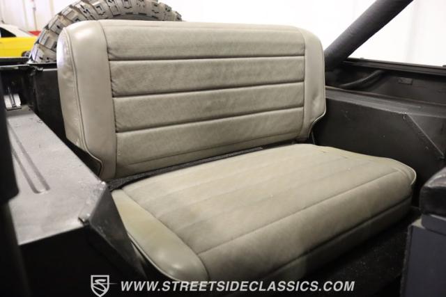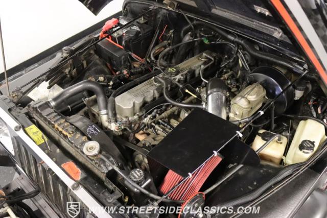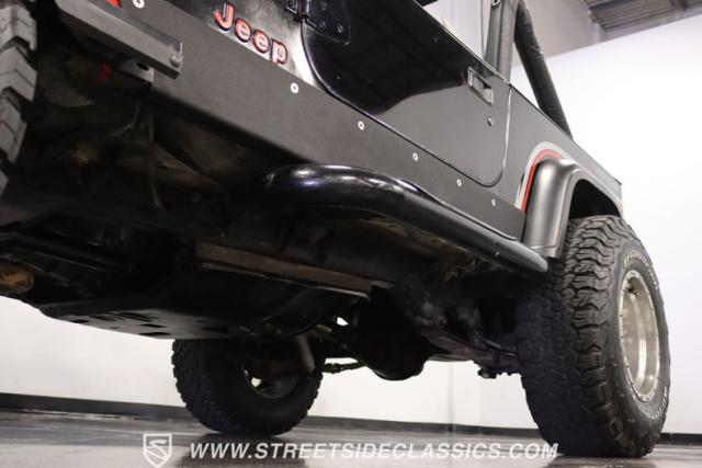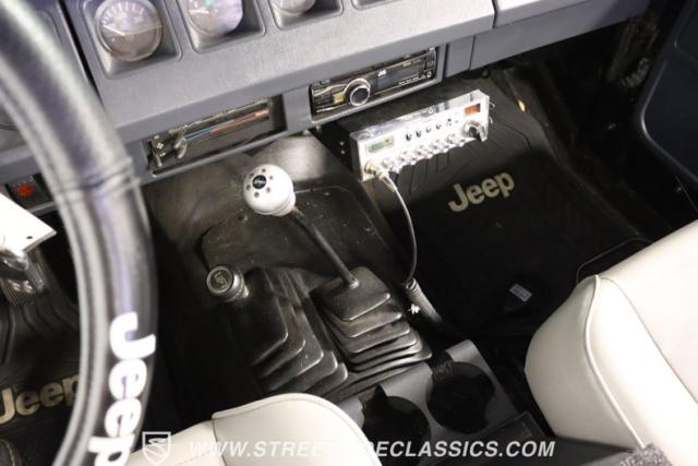 Under the hood is the correct-style 4.0-liter motor. It remains honest with just nice investments in newer pieces like the seals, sensors, and a cold air intake. And we like it when they are quite stock because this inline-six was derived from the tough-as-nails AMC line of motors, and the fuel injection adds to the durability and economy. It fires up readily, runs confidently, and shifts smoothly - so it feels like a hardy Jeep. And the 4x4 ability is enhanced with Rancho shocks, newer driveshafts, and BF Goodrich All-Terrain tires. And because a go-anywhere machine also means time on the city streets, you have good anytime features like power steering, power brakes, and front discs.