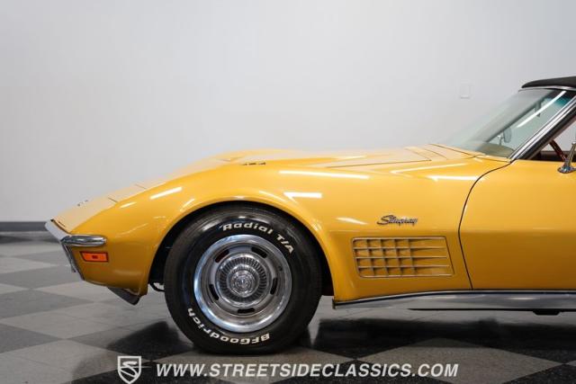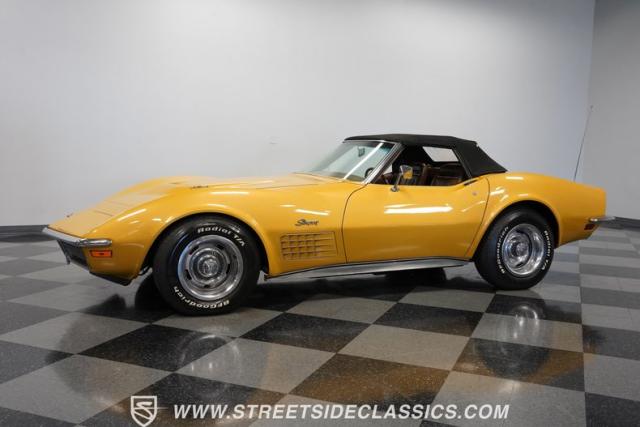 Owning a Corvette is like being part of no other vehicle lineage. America\'s longest-running model, Chevy\'s halo car, is now in its eighth generation, and with each passing year, more of its previous seven iterations become more collectible. The C3, like this 1971 Chevrolet Corvette 454 Convertible we have for you, has slowly risen in the hearts and minds of collectors and enthusiasts over the last several years. Fully repainted in War Bonnet Yellow, complemented by its black manual convertible top, this numbers-matching big block is a real head-turner from any angle.