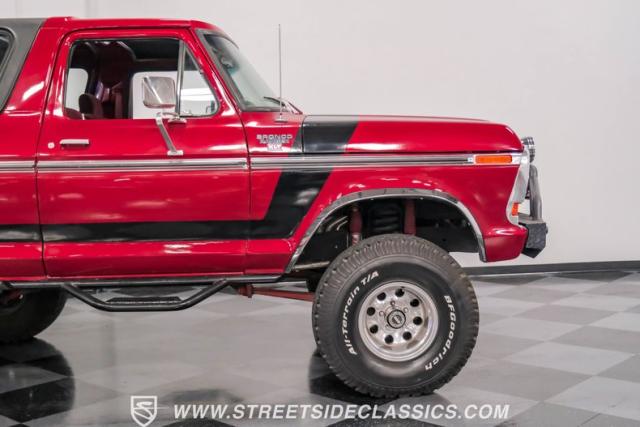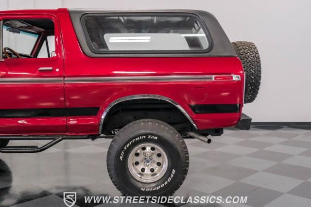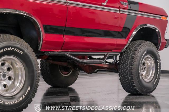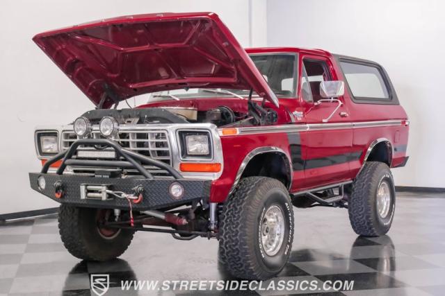Second-Generation Ford Broncos were only produced for two years, making them an uncommon sight and sought after by enthusiasts today. These Broncos are tough and many were used and abused to the end, however a few have survived and this is one of them, and it is very special. Making this restored 1978 Ford Bronco unique is not only its excellent condition, but the list of enhancements. Starting with the most noticeable is the lift kit that raises it up high enough to comfortably clear the aggressive 35x12.50/R15 BF Goodrich All-Terrain T/A tires mounted on 15-inch polished bullet style wheels that make this tough Ford look even tougher, affording it to have much enhanced off-road capabilities. Rancho adjustable shocks and a new stabilizer bar add stability and drivability both on the road or off on a trail.