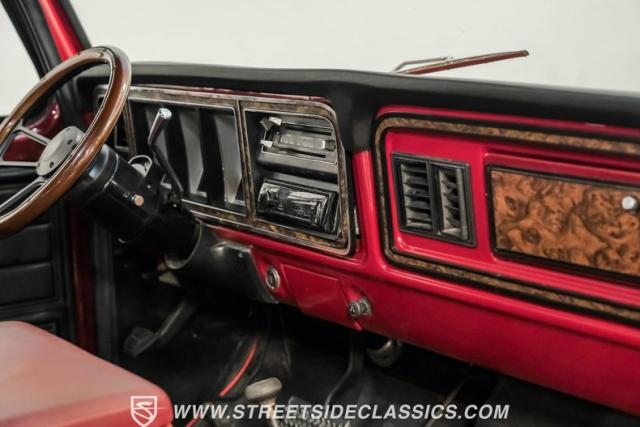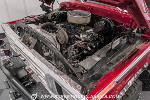 Powering this rare 4x4 is Ford\'s famously rugged 400 cubic inch V8 engine mated to a 3-speed C-6 automatic transmission. The engine features an aluminum Weiland intake manifold topped with a Holley 4-barrel carburetor, Edelbrock air cleaner, Champion aluminum radiator with electric fans, custom aluminum valve covers and long-tube headers that breathe out through dual exhaust that rumble with Flowmaster mufflers.