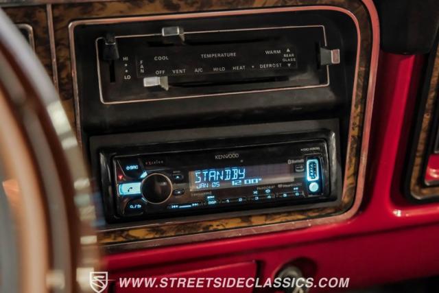 Use the side protection rails with built-in steps to easily enter the interior that has been upgraded with comfortable front seats and fold-down armrest from a newer truck, custom wood-grain steering wheel on a tilt column, and a Kenwood CD player that is Bluetooth, Sirius XM and Pandora compatible.